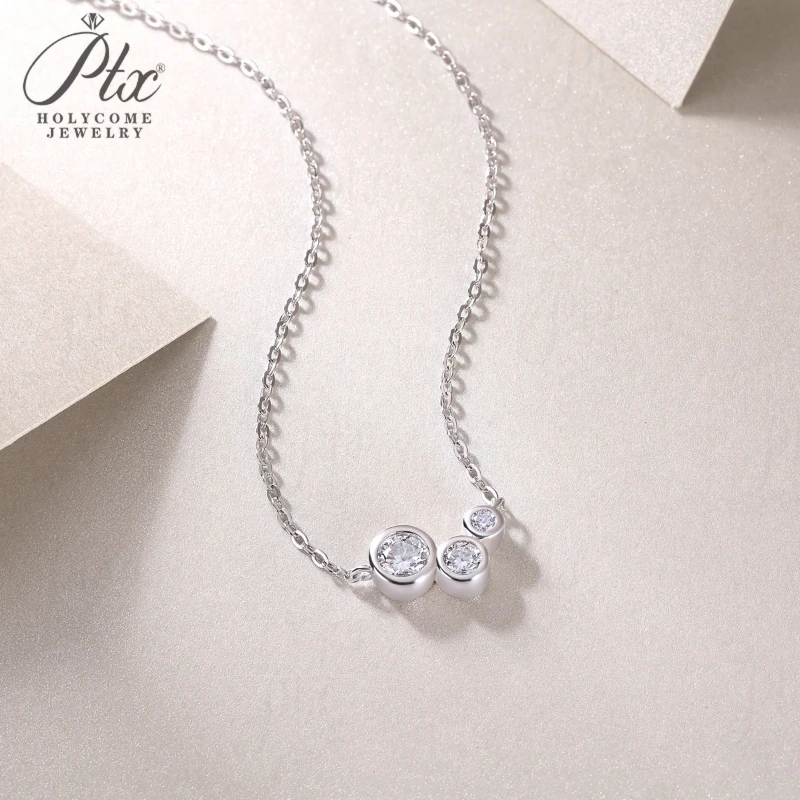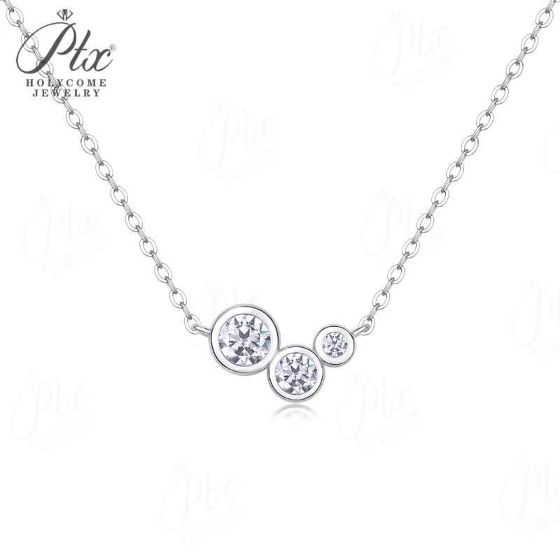 Moissanite Necklace Sparkling Classic Round Pendant 925 Sterling Silver Jewelry Anniversary Gift for Women