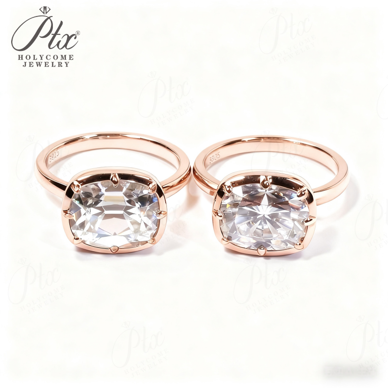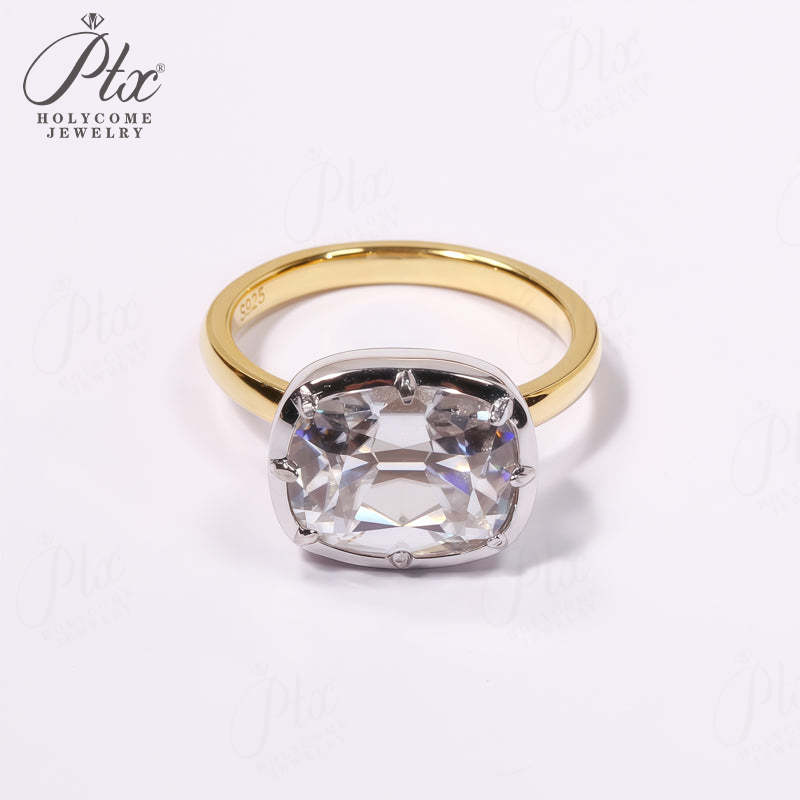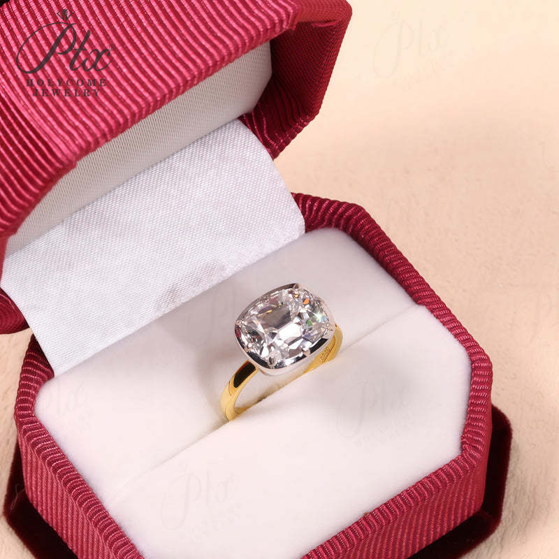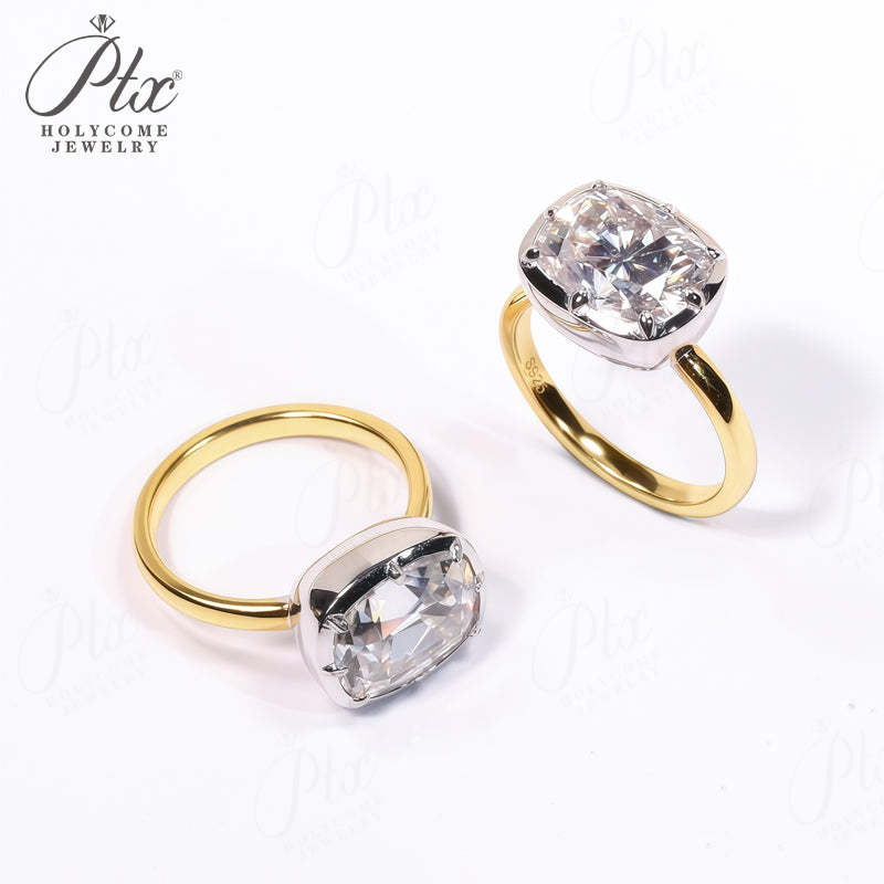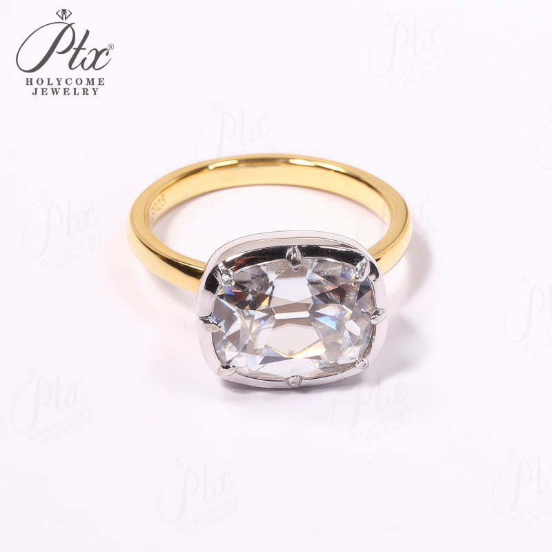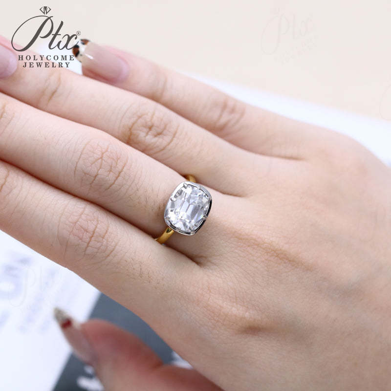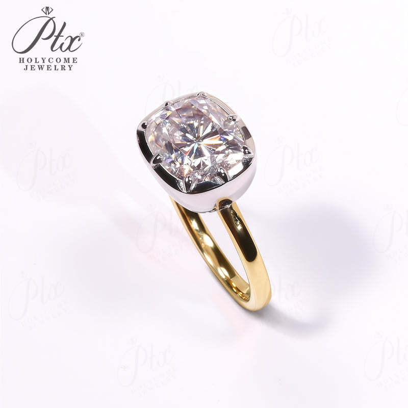5CT Cushion Cut Moissanite Ring for Women Solid 18K 14K 10K Yellow Gold Two Tone Ring for Christmas Gifts