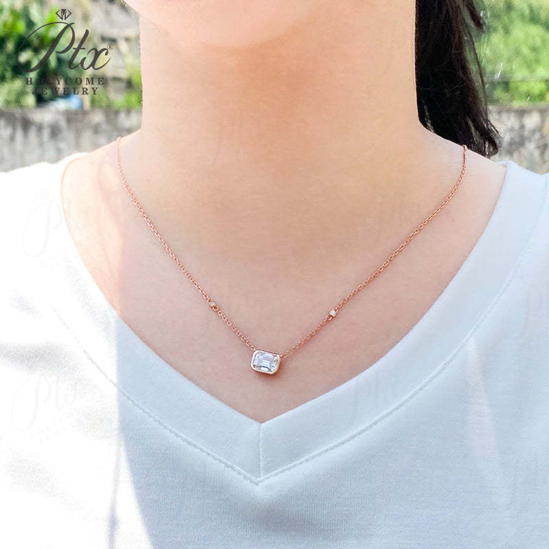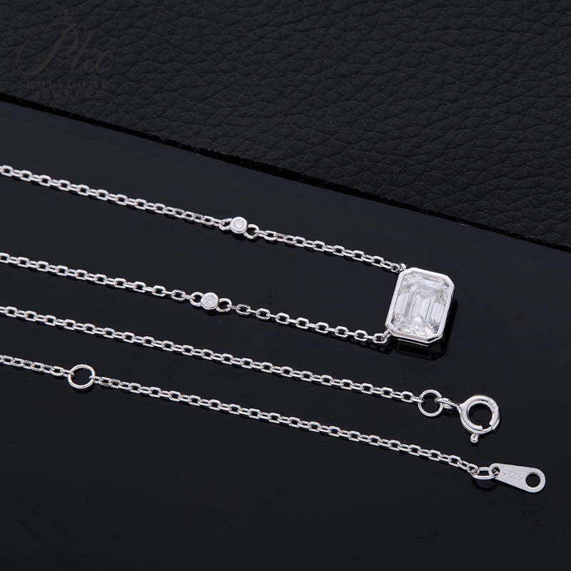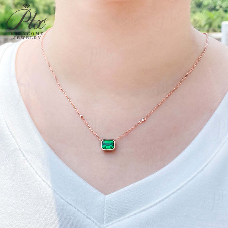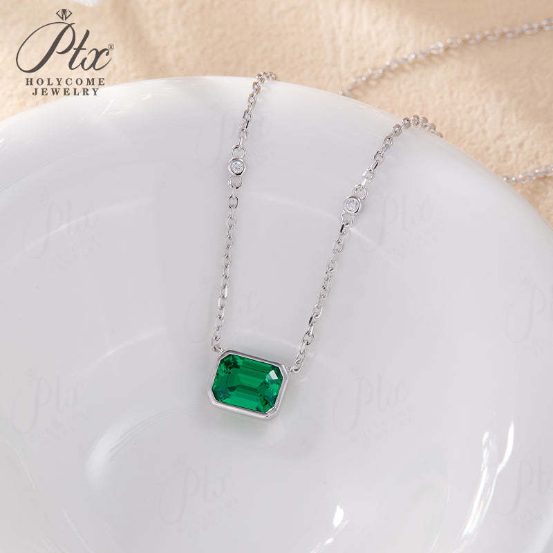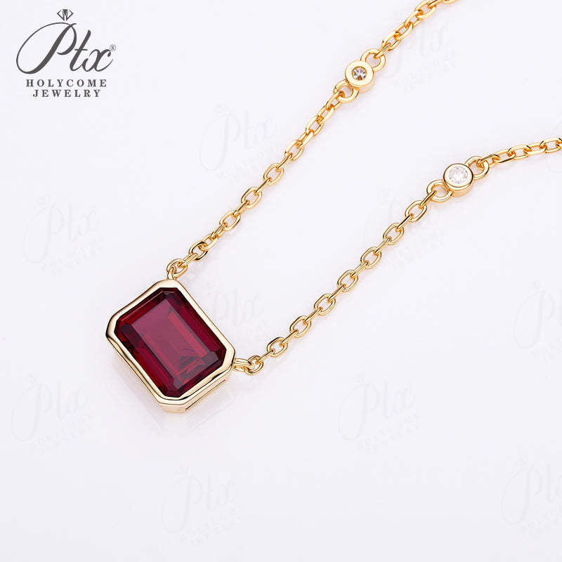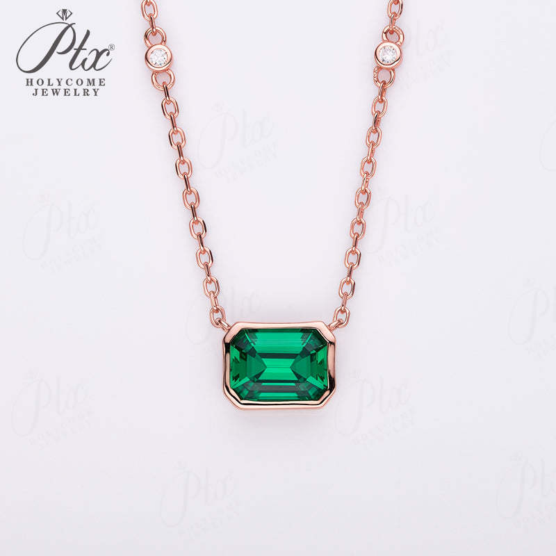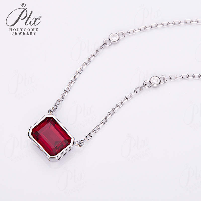 6×8mm Lab Grown Gemstone Emerald Cut Necklace D Color Ruby Sapphire Emerald VVS1 Clarity Banquet Anniversary