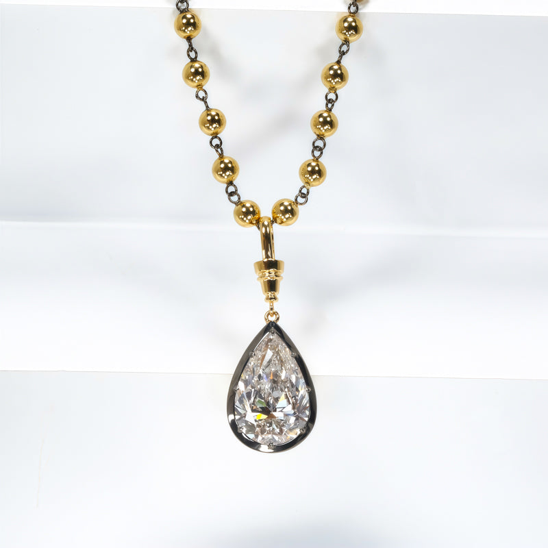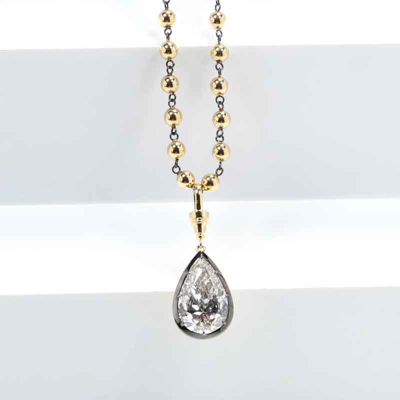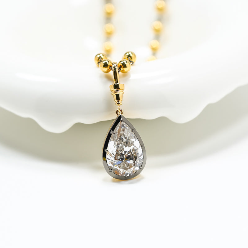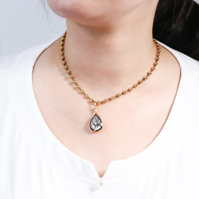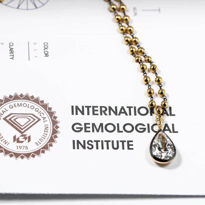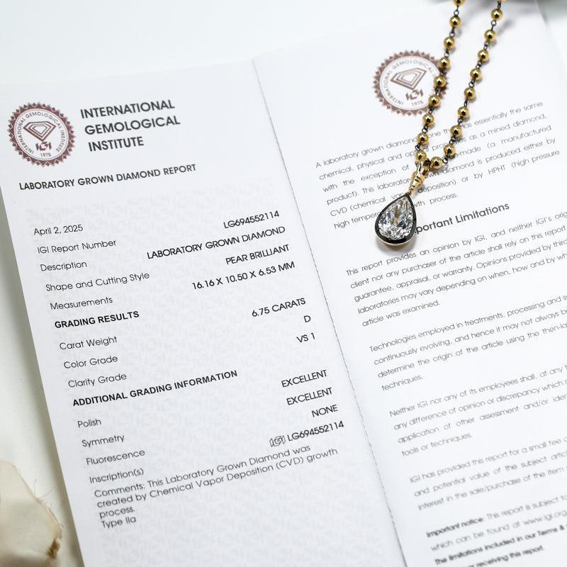 Lab Grown Diamond Pear Cut 6.75ct 4mm Gold Beaded Necklace 18K D Color 3EX VVS1 Clarity Diamond Wedding Anniversary