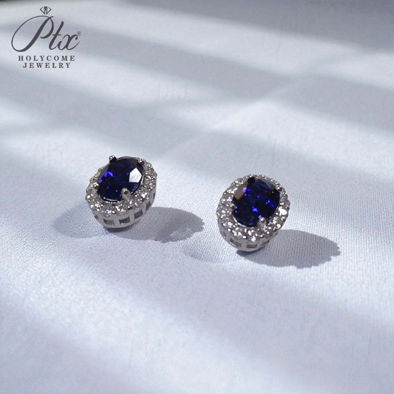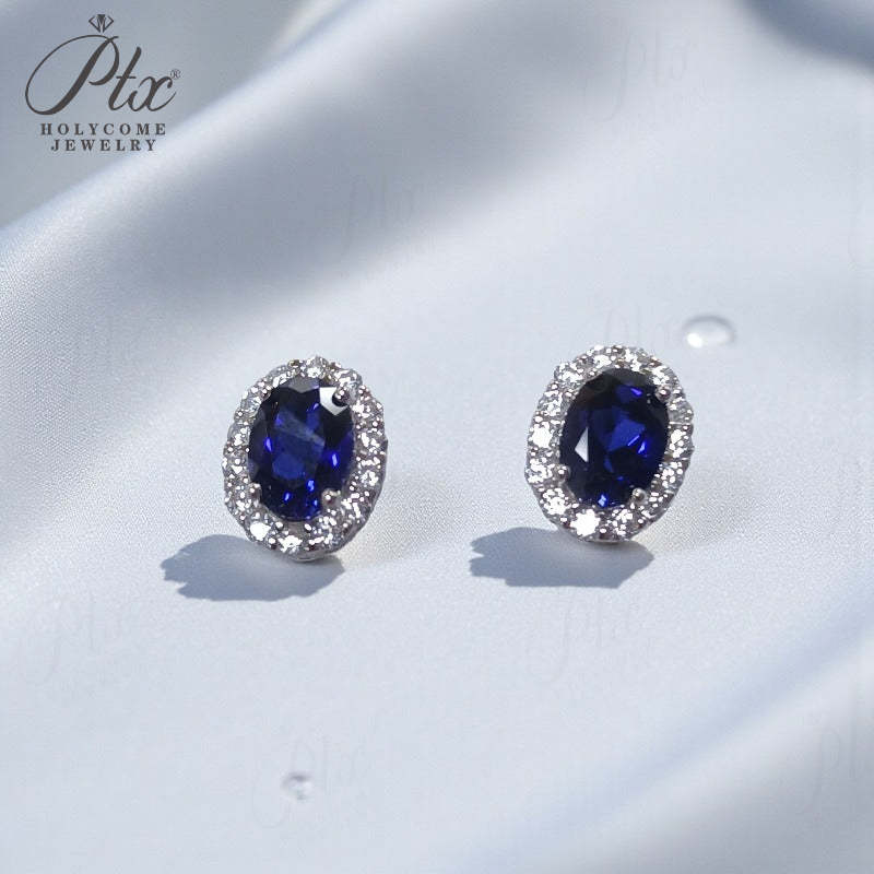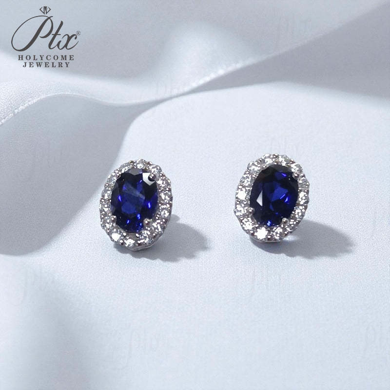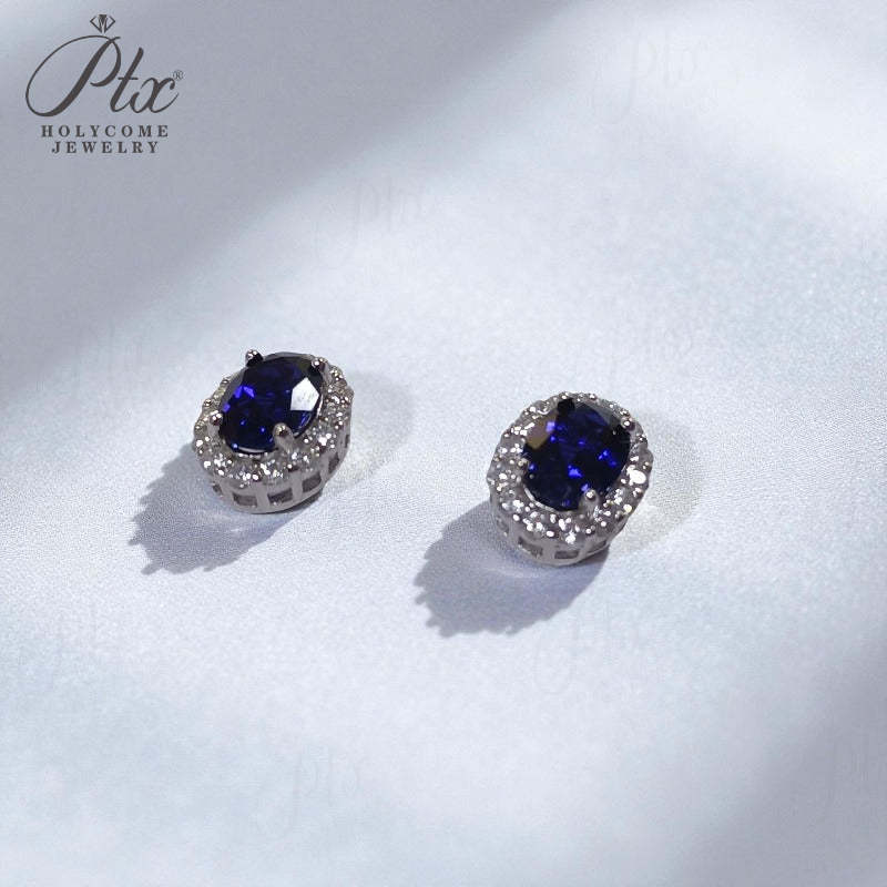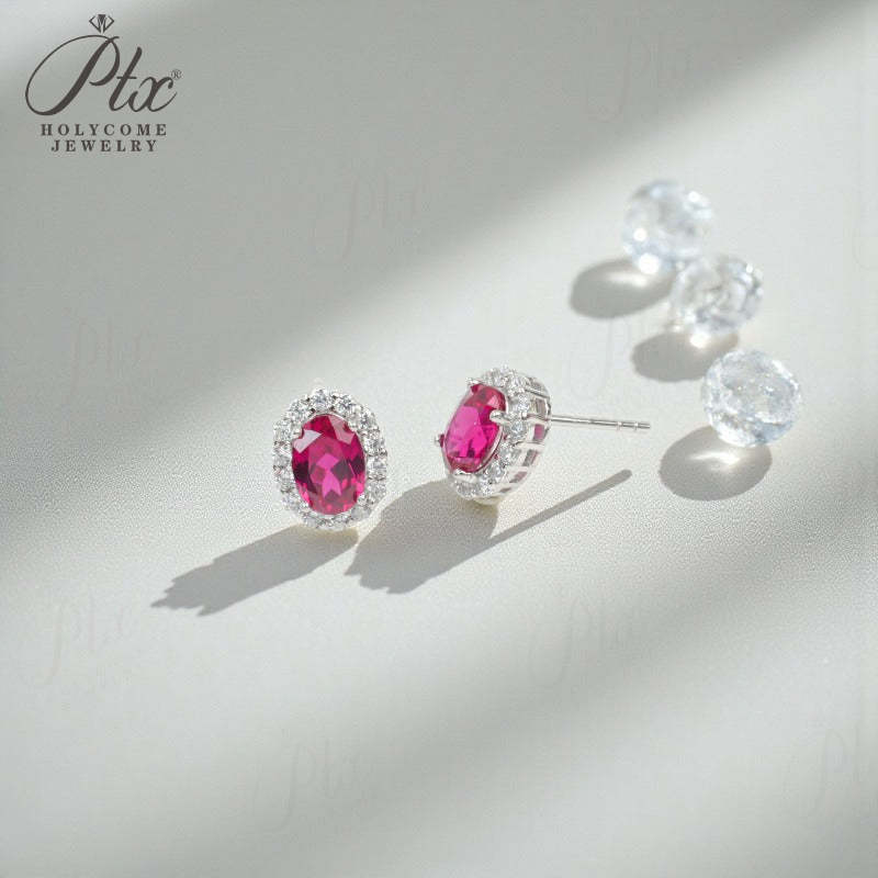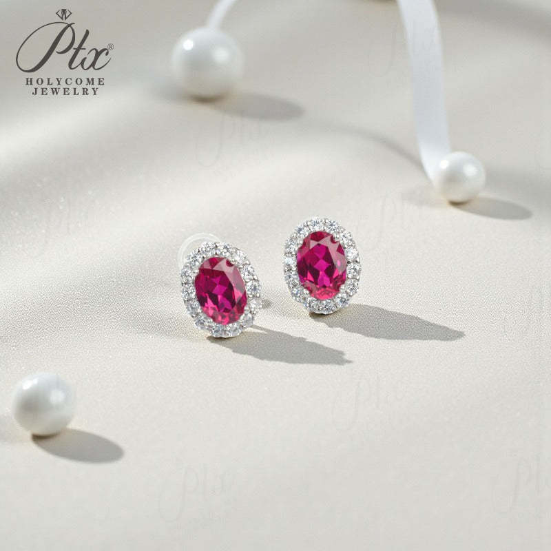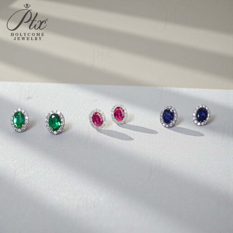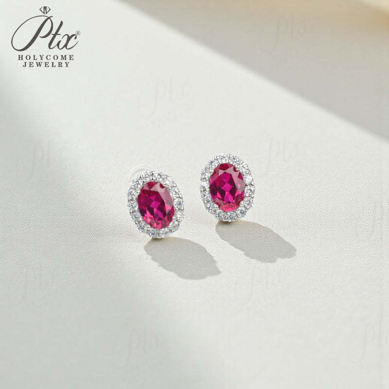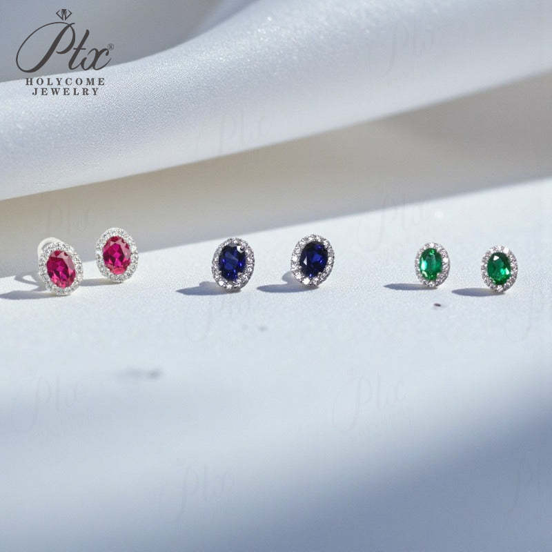 Lab Grown Gemstone Earring 1.7-2CT Oval Ruby Sapphire Colombia With Moissanite S925 Hypoallergenic Earring for Women Girls Gift