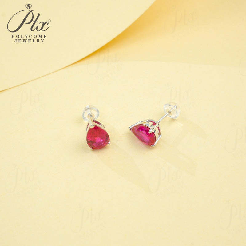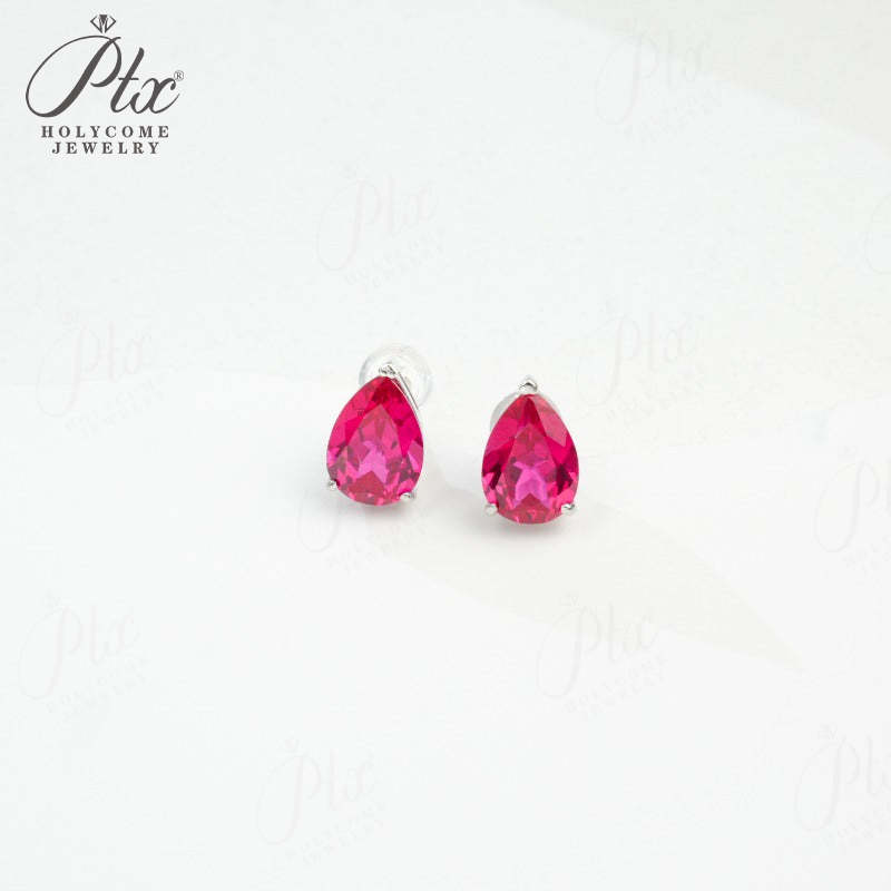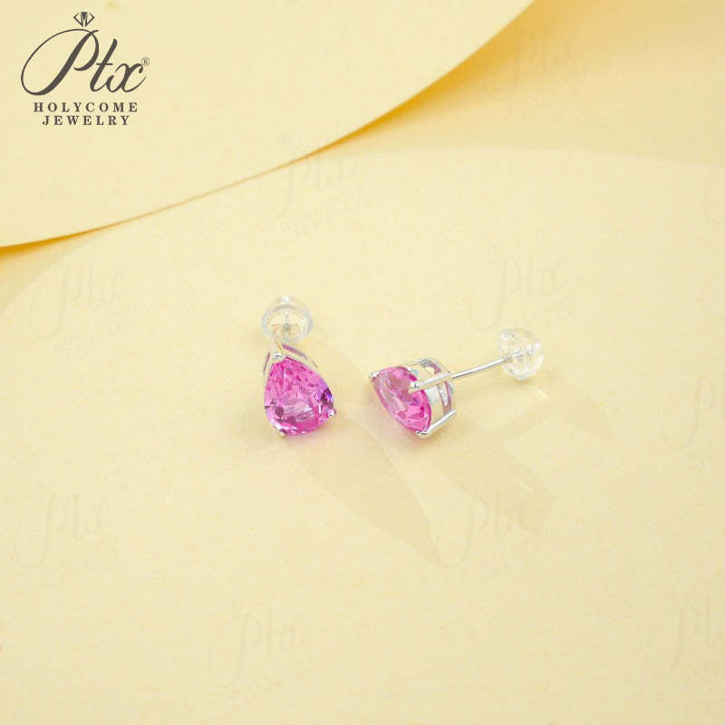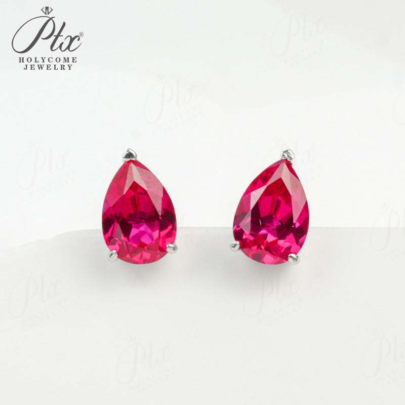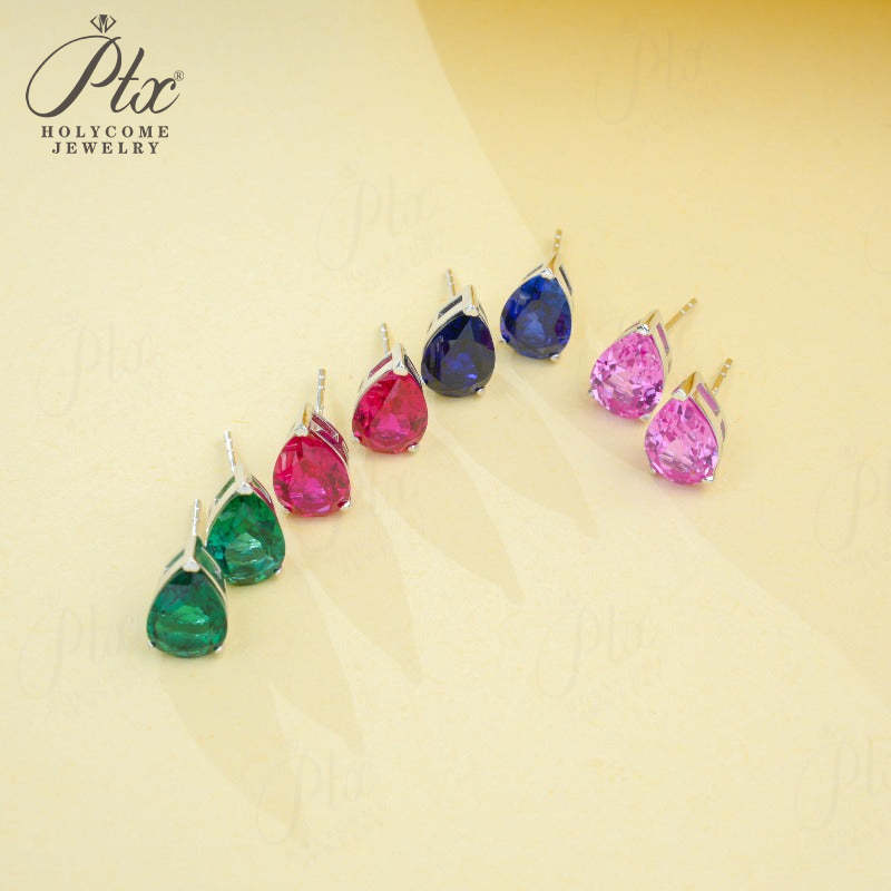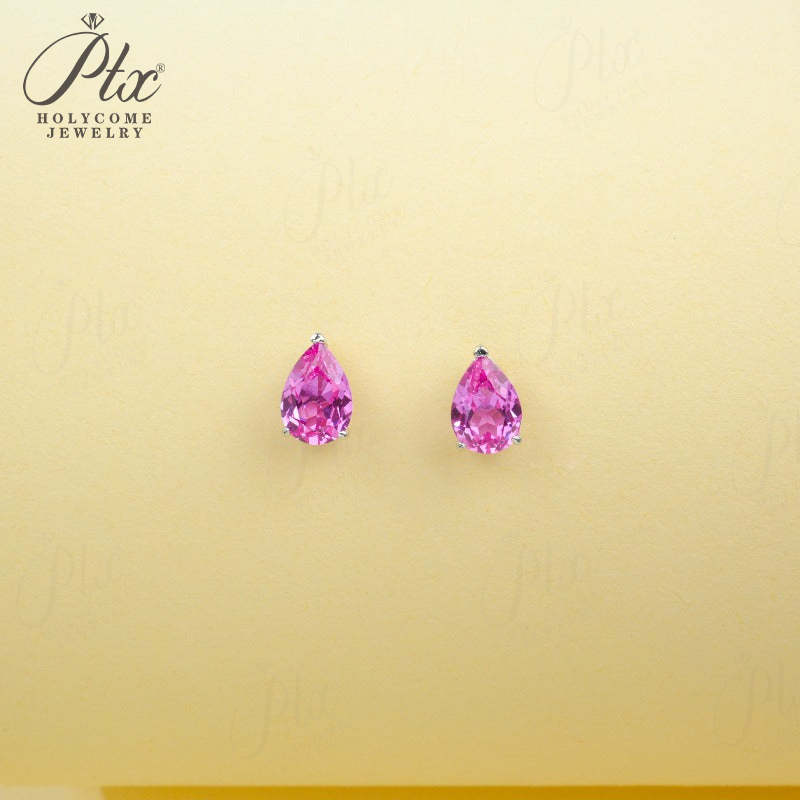 Lab Grown Gemstone Earrings 3.7-5CT Ruby Sapphire Colombia Padparadscha 925 Silver Three Claw Design Pear Earring Hypoallergenic