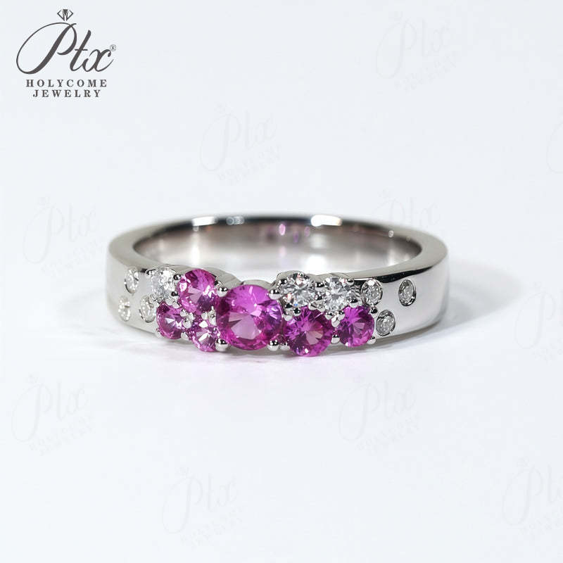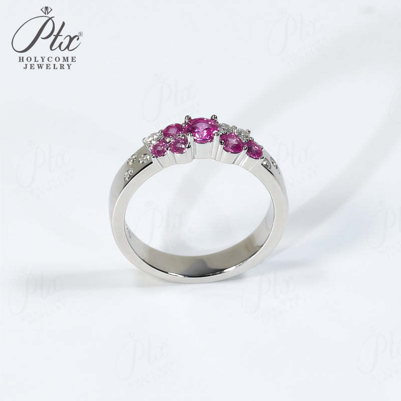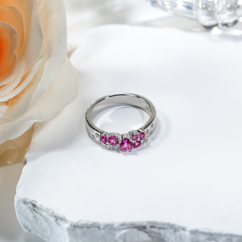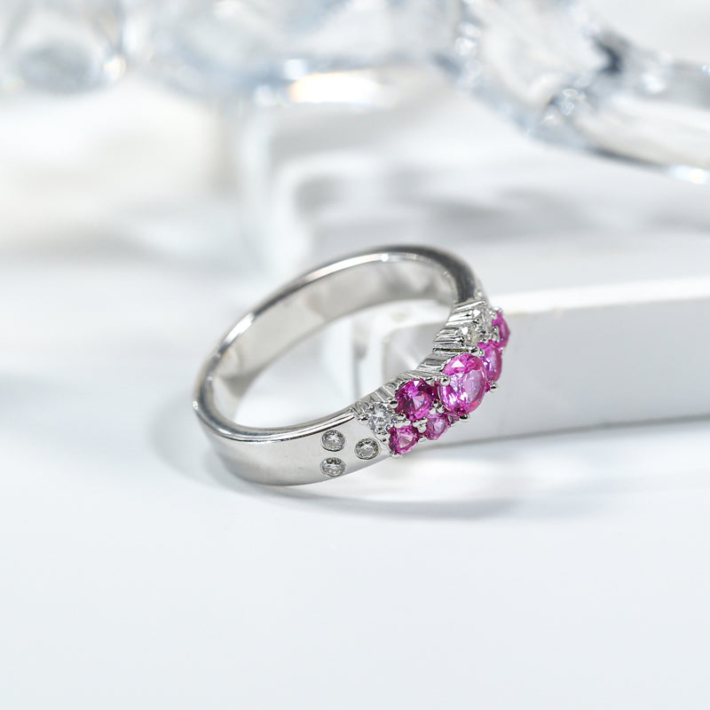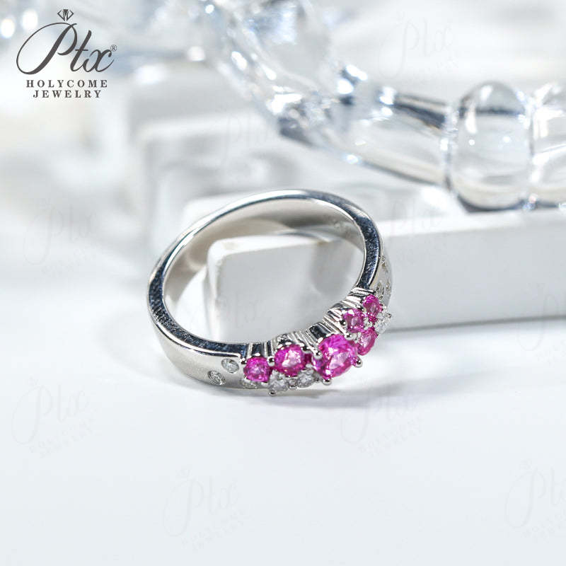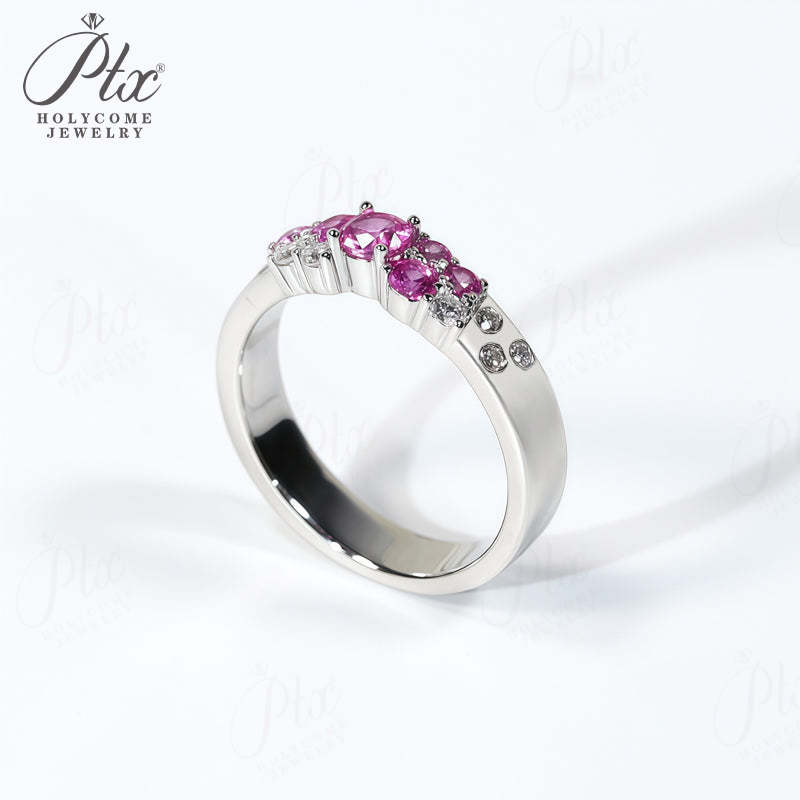Ring Flower Bud Shape Lab Grown Pink Sapphire 10K 14K 925 Sterling Silver Wedding Band jewelry for Woman Men Romantic Charms