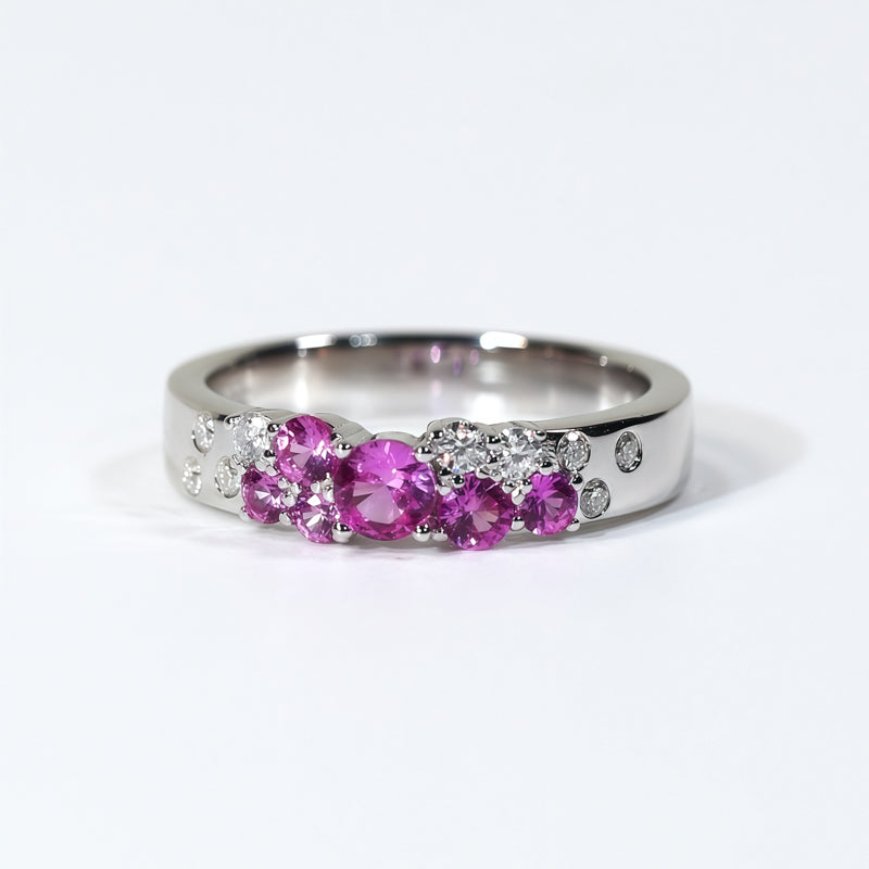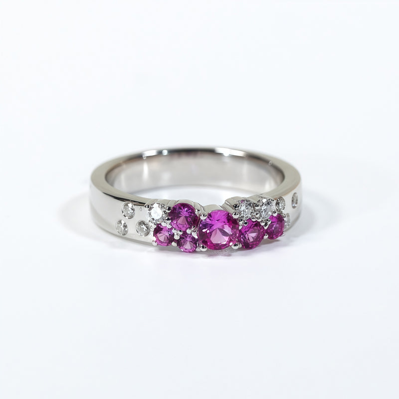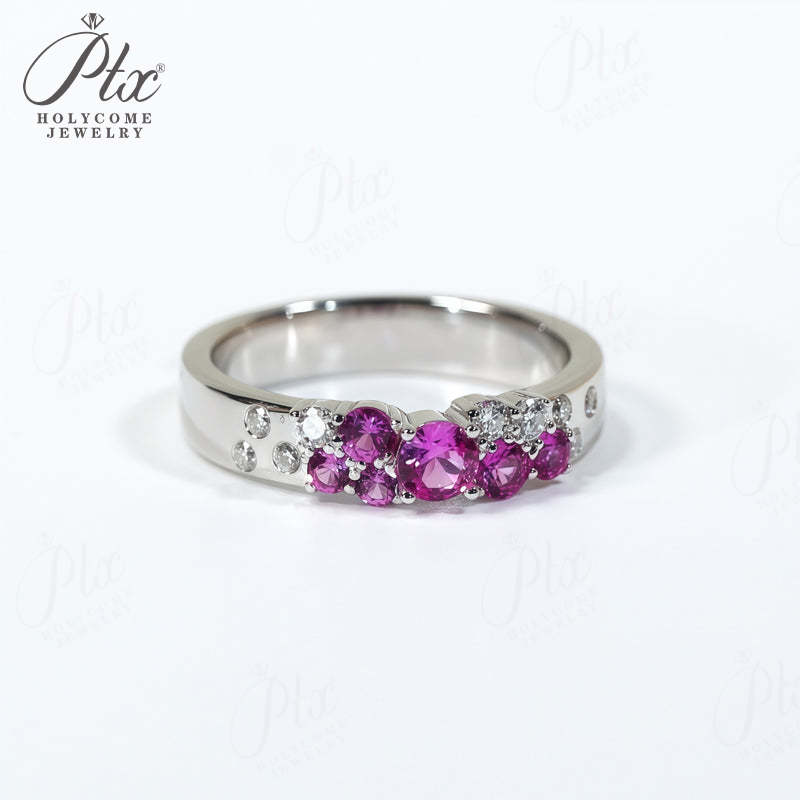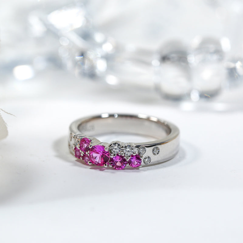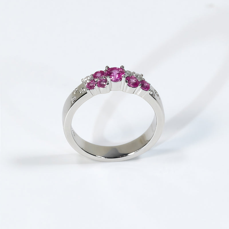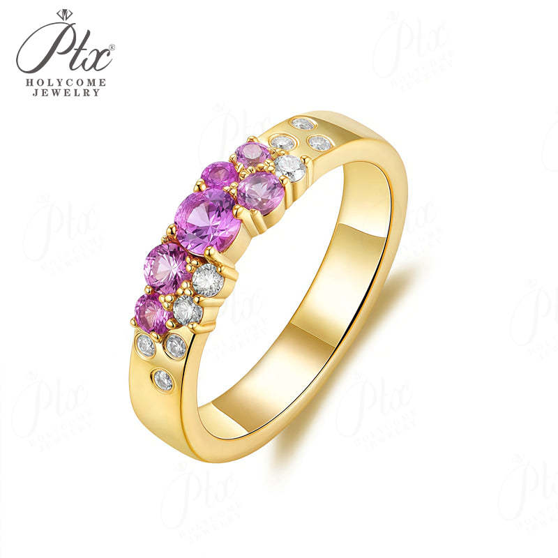 Ring Flower Bud Shape Lab Grown Pink Sapphire 10K 14K 925 Sterling Silver Wedding Band jewelry for Woman Men Romantic Charms