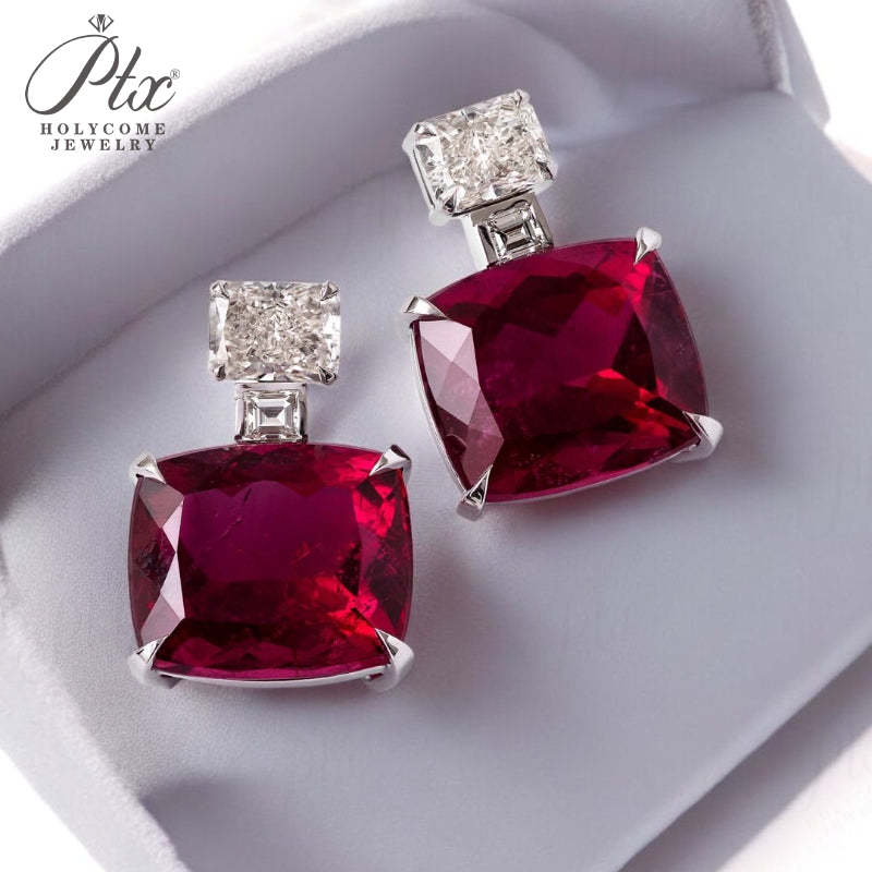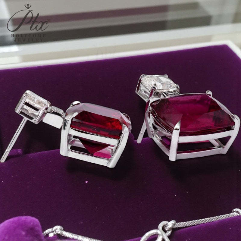 Lab-Grown Gemstone Earrings with D Color Moissanite 925 Silver Chubby Rectangular Anniversary Gift Hypoallergenic