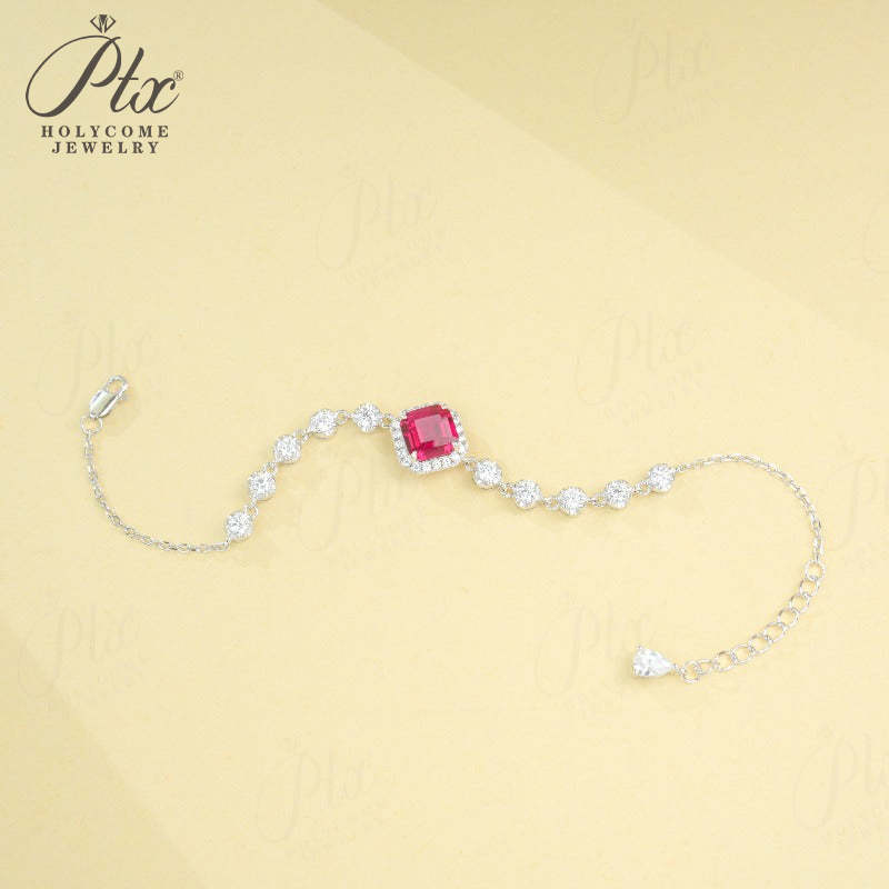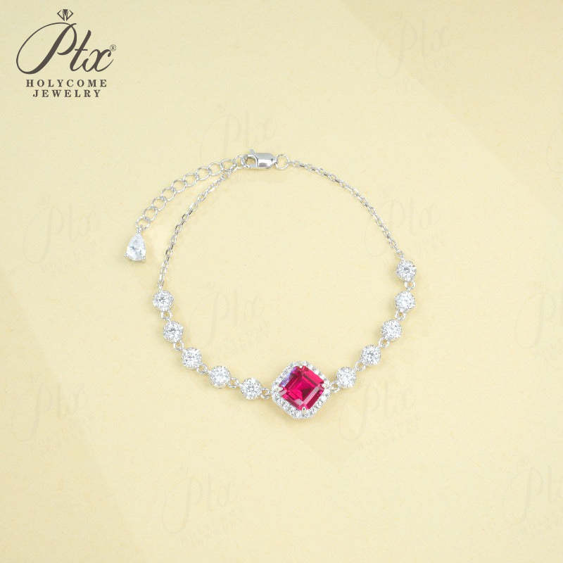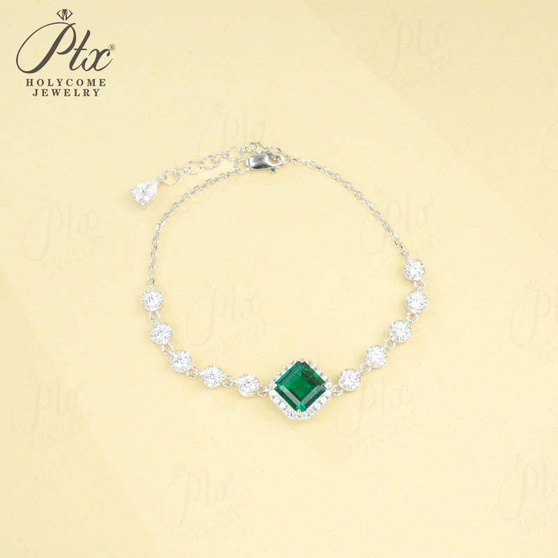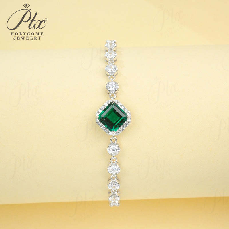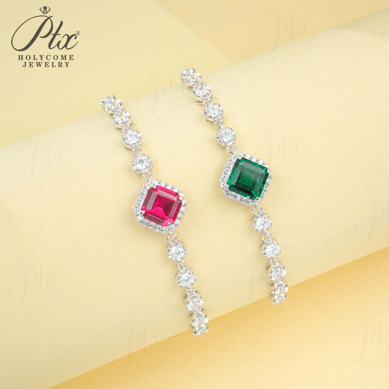 Lab Grown Columbia Emerald/Ruby 2-3ct Asscher Cut Bracelet White Gold Cultured Gemstone Bangle Luxury Gift for Her