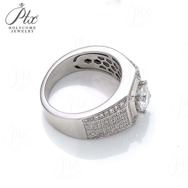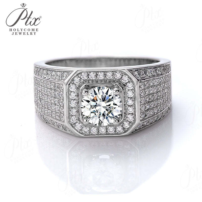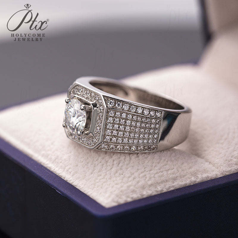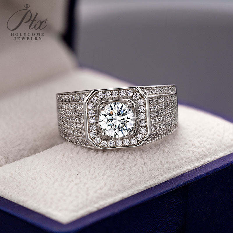 S925 Round Moissanite Half-Eternity Halo Ring for Men Gifts For Festivals And Anniversaries