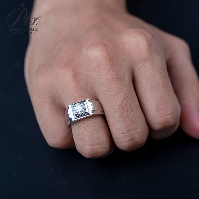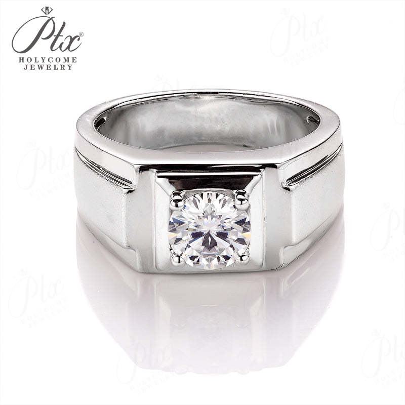 Sterling Silver Round Moissanite Ring for Men Only Gifts For Festivals And Anniversaries