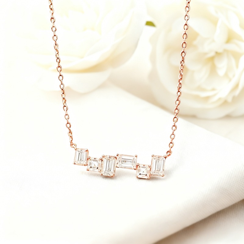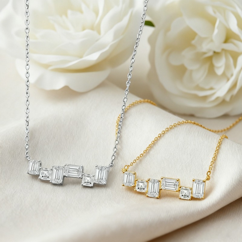 Moissanite Necklace with3CT D Color Asscher/Emerald Cut Moissanite S925Plated White Yellow Rose Gold Chain Engagement Daily Gift