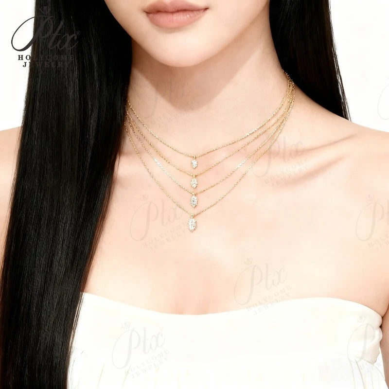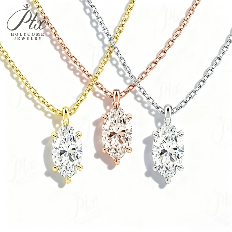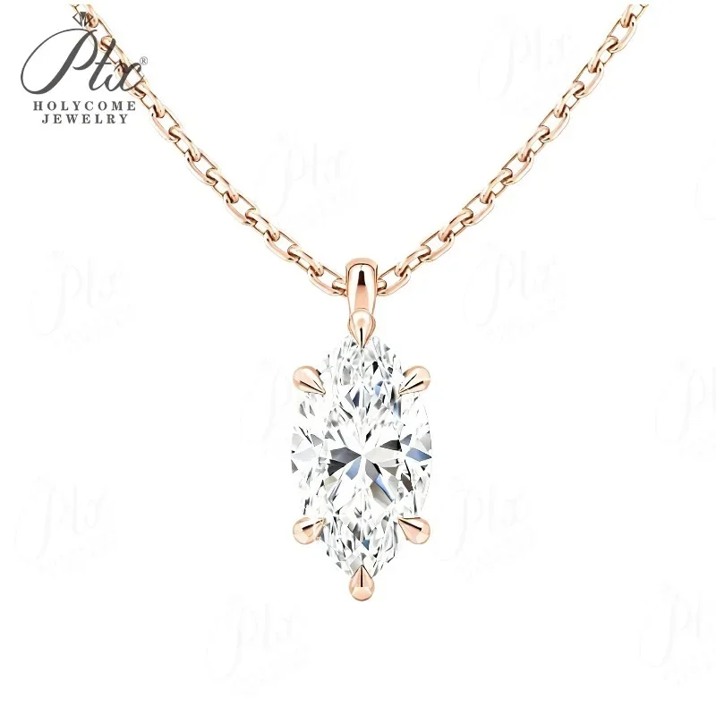 Moissanite Pendant Six Claw Marquise Necklace White Yellow Rose Gold Options Sparkling Fine Jewelry Special Occasion Gift