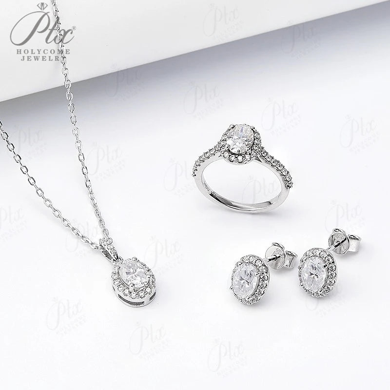 Jewelry Set Moissanite Jewelry Set Oval Cut It Includes Ring Necklace & Earrings Suitable for Weddings and Ideal As A Gift