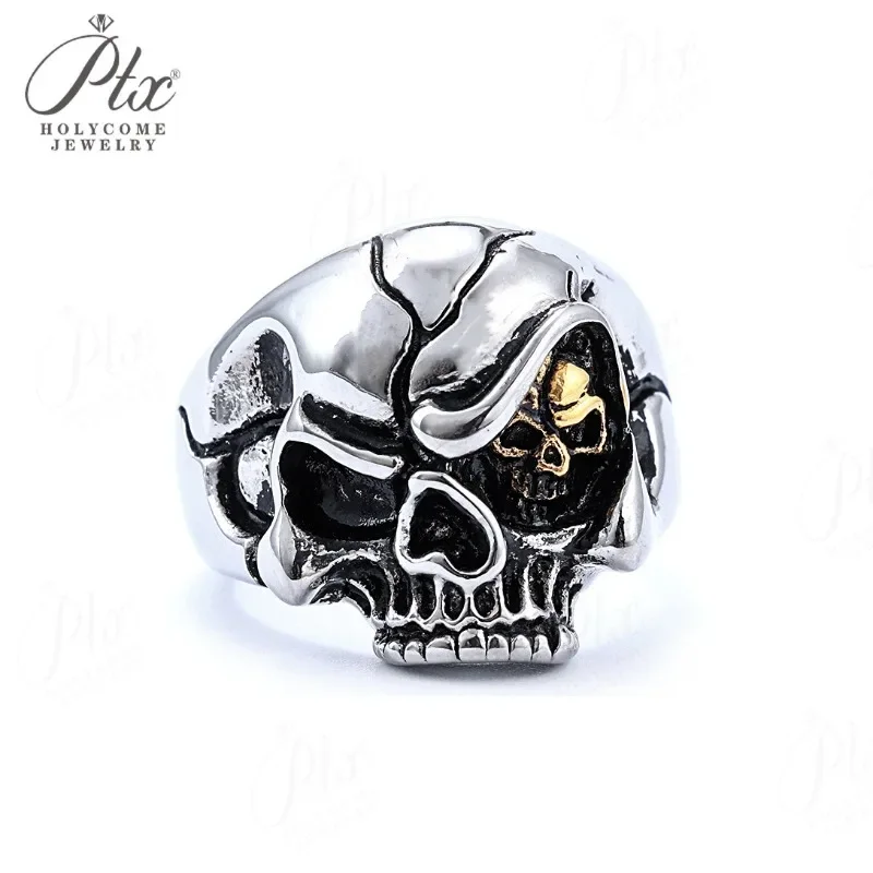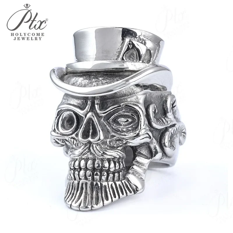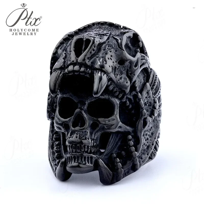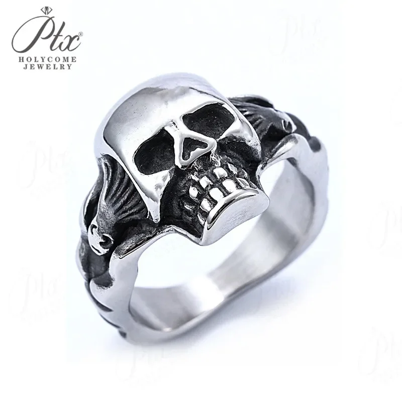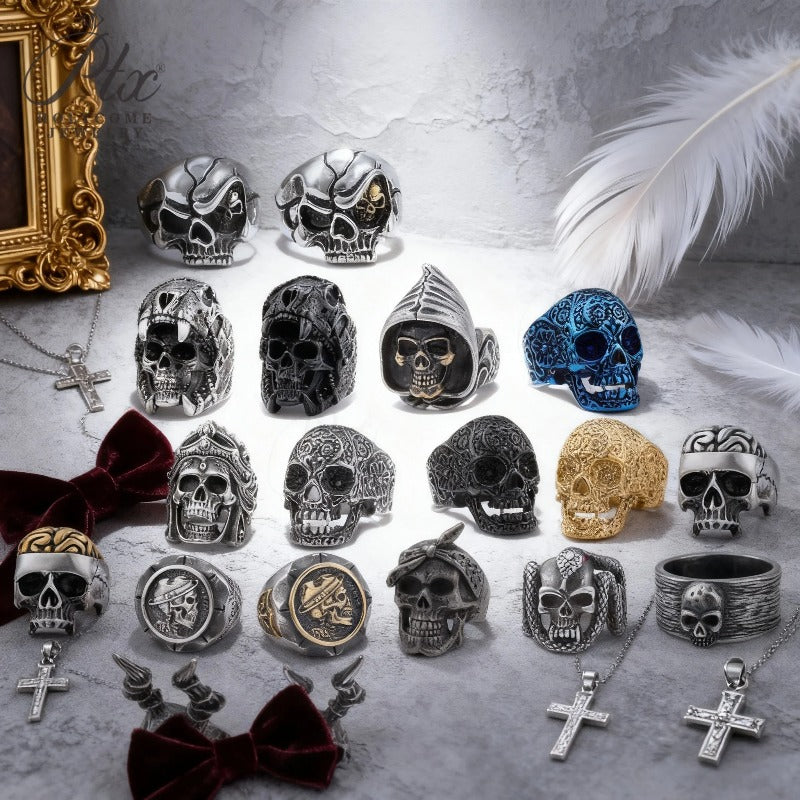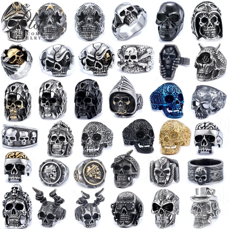 Men’s Punk Skull Rings Stainless Steel Multi-Style Hip-Hop Biker Fashion Jewelry Personality Rock Ring Party Charm Gift