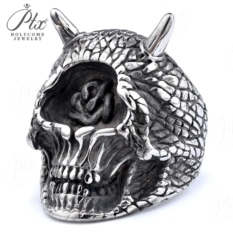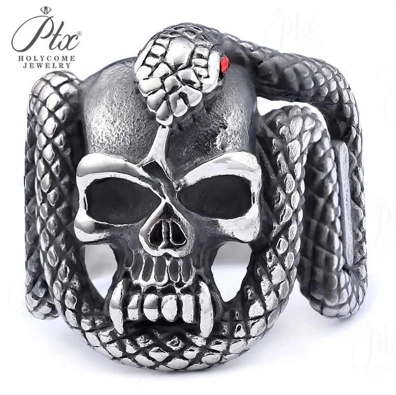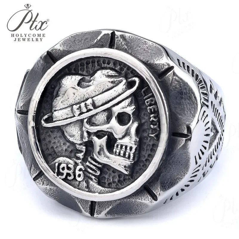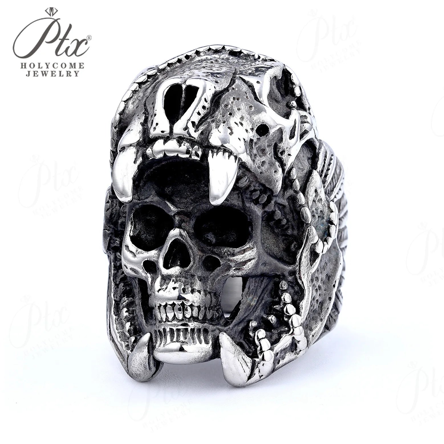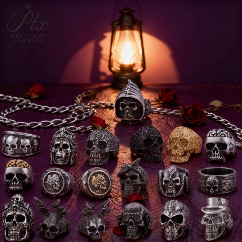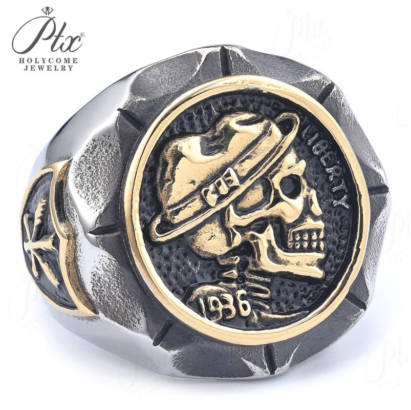 Men’s Punk Skull Rings Stainless Steel Multi-Style Hip-Hop Biker Fashion Jewelry Personality Rock Ring Party Charm Gift