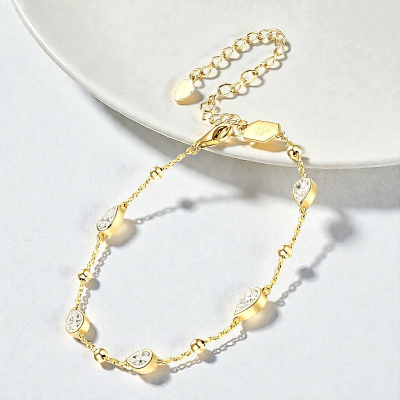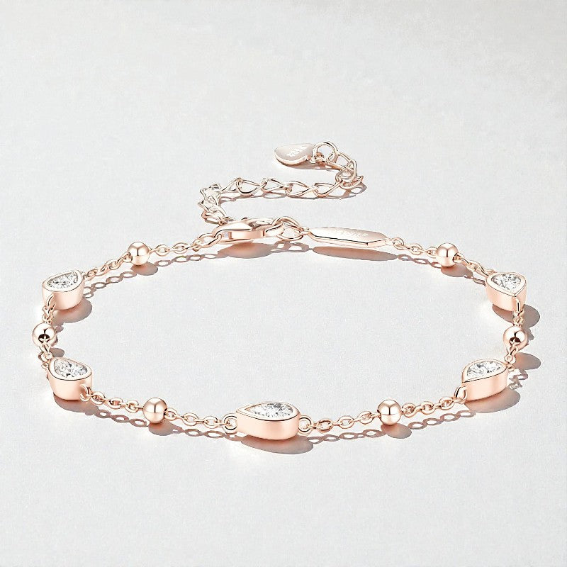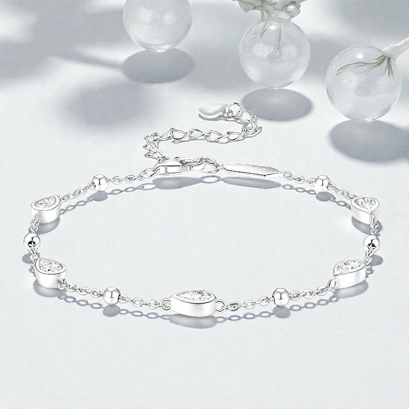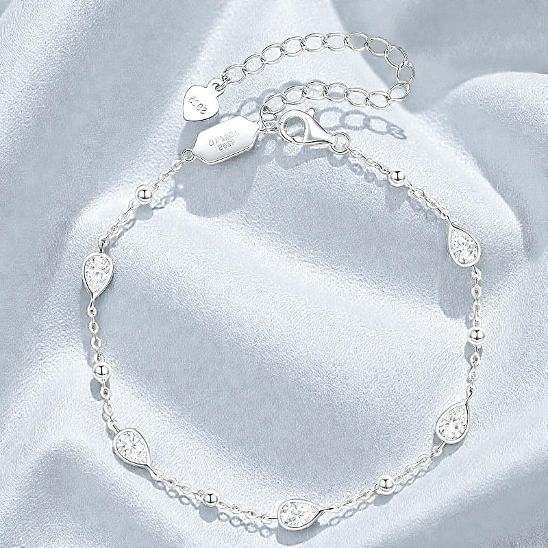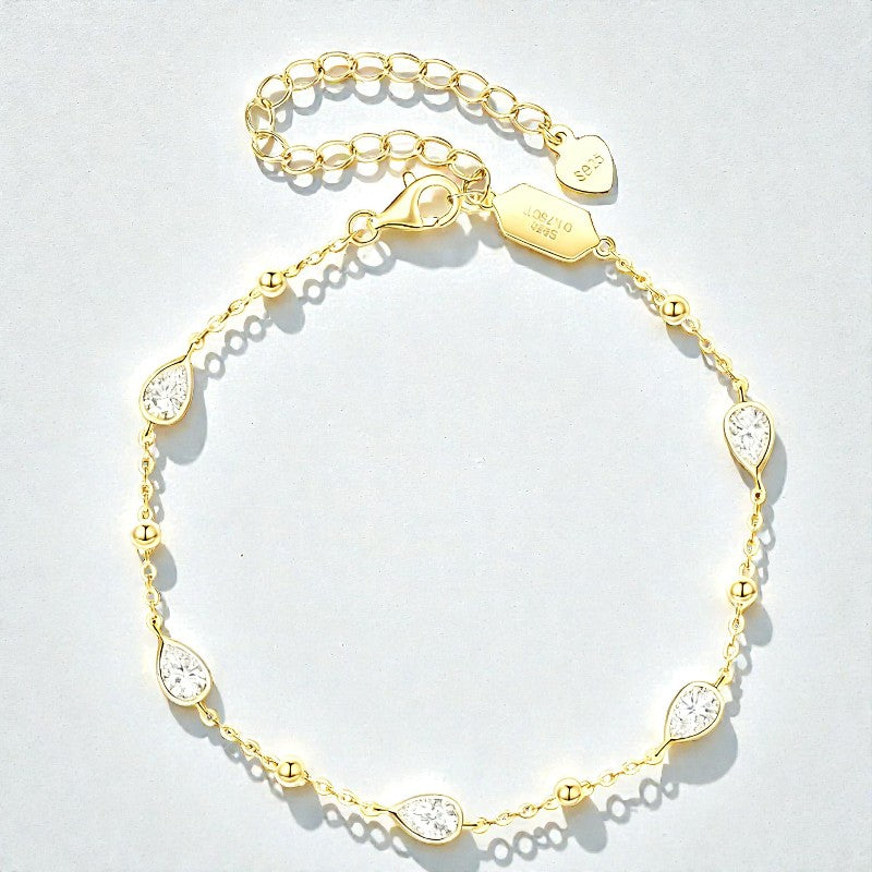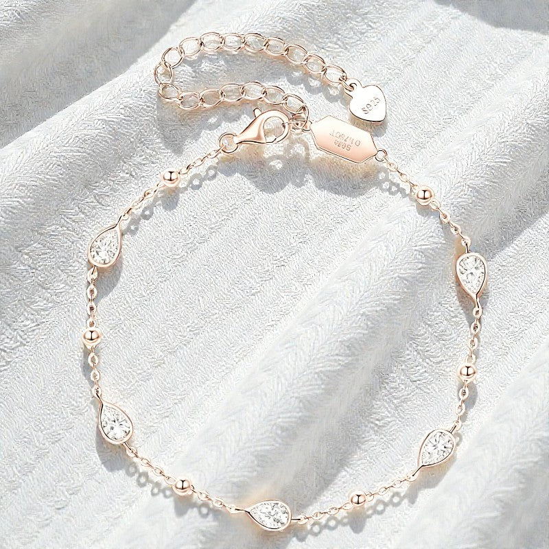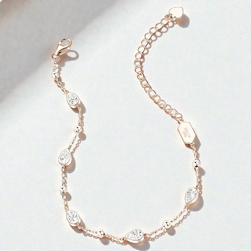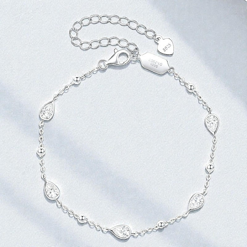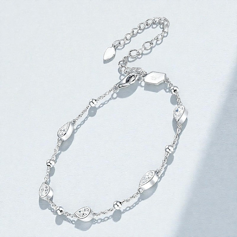 Elegant Moissanite Teardrop Bracelet Pear Shape Gem Beaded Chain Chic Women’s Everyday Jewelry Delicate Shine Fashion Gift