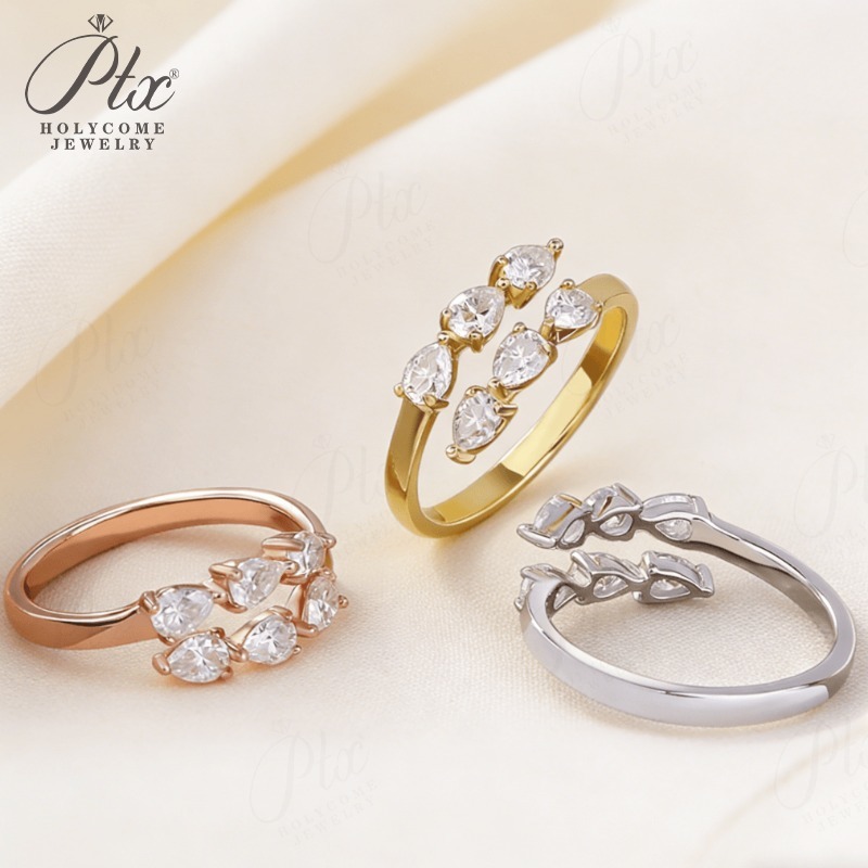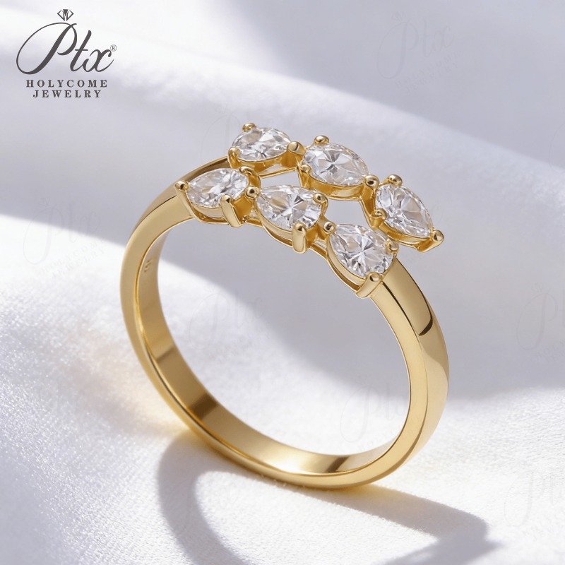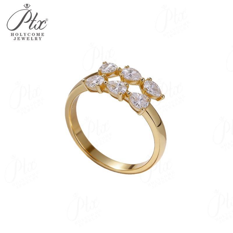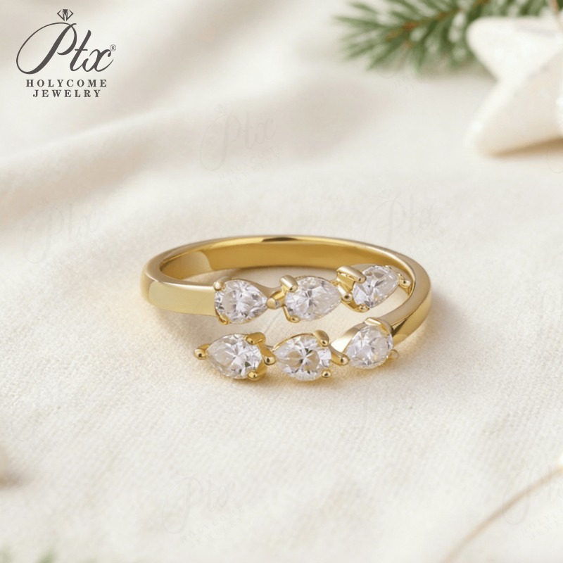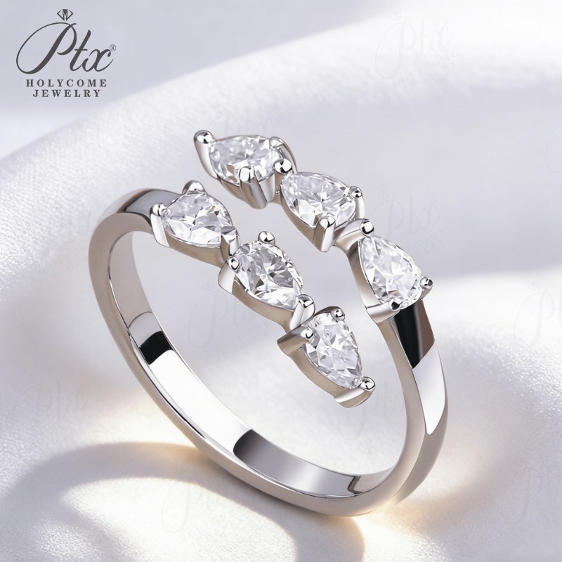 1.8CT Moissanite Pear Cut Minimalist Open Ring White Gold Yellow Gold Rose Gold Radiant Light Women Fine Jewelry