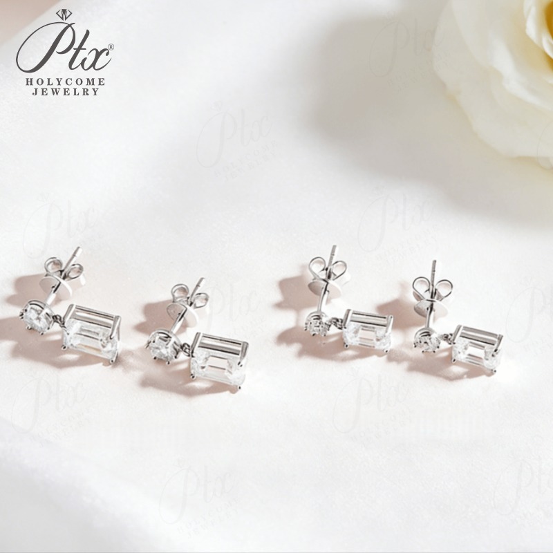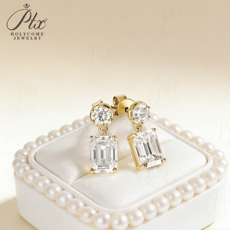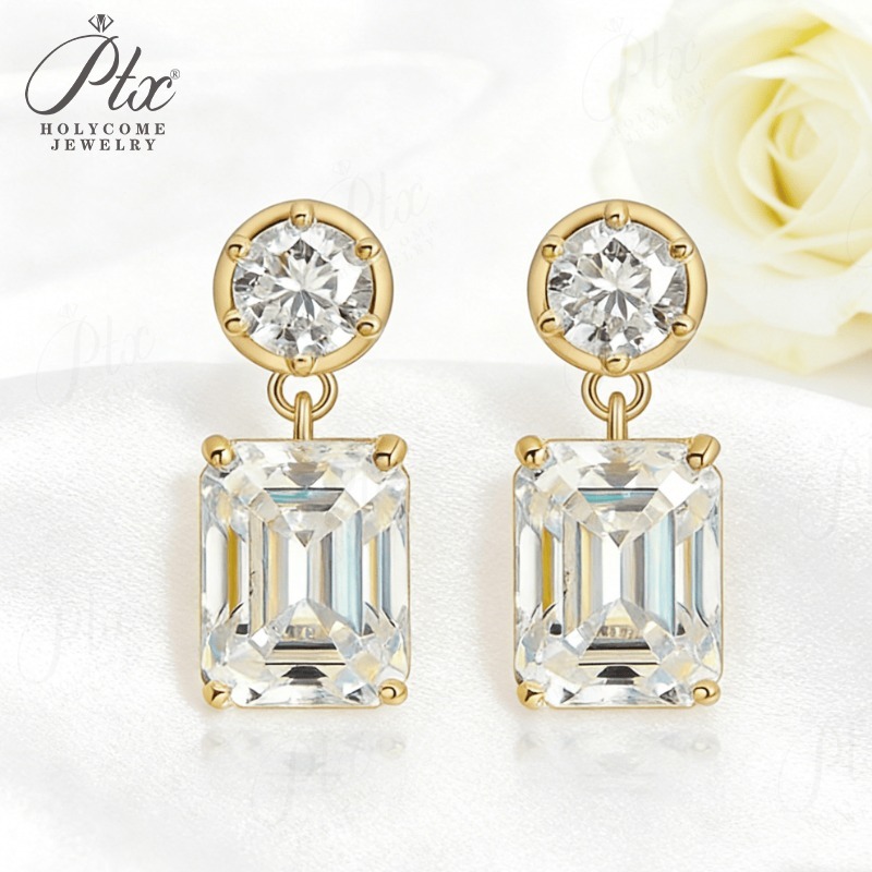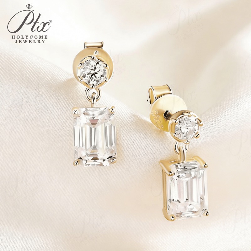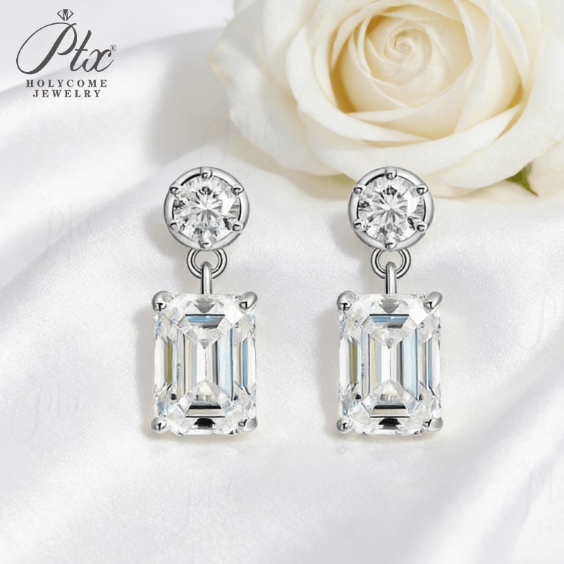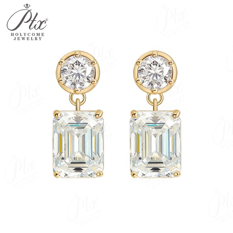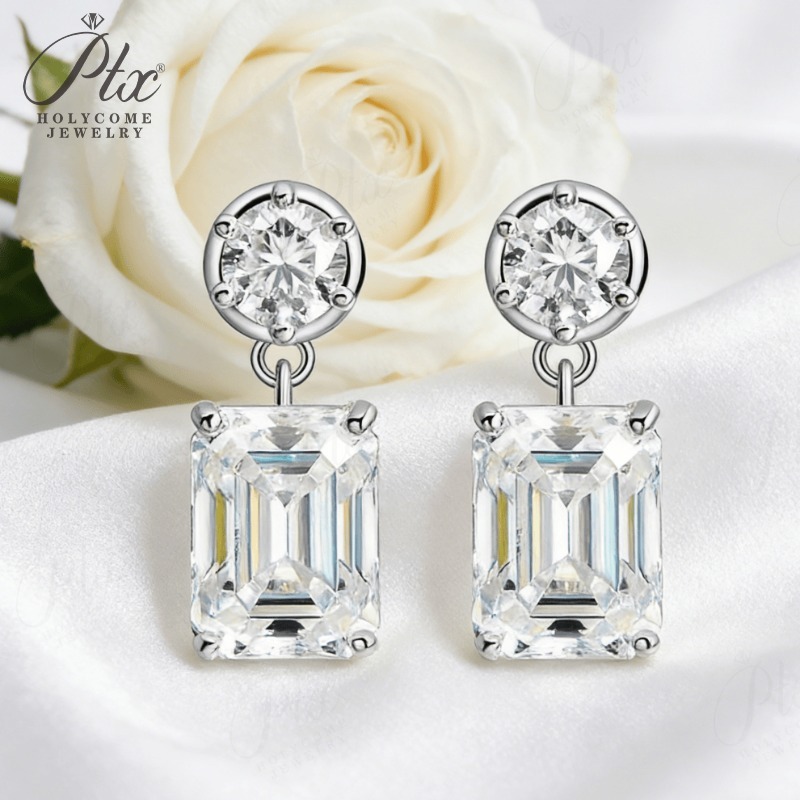 Moissanite Round Cut+Emerald Cut D White Earrings White Gold Yellow Gold Designer Studs Fine Jewelry Anniversary Wedding Gift