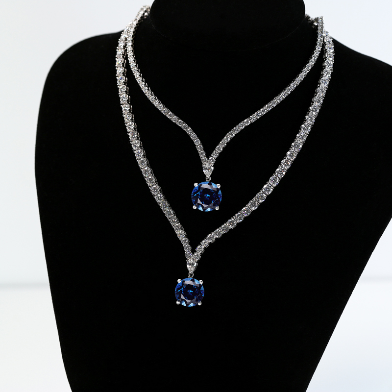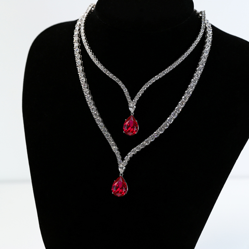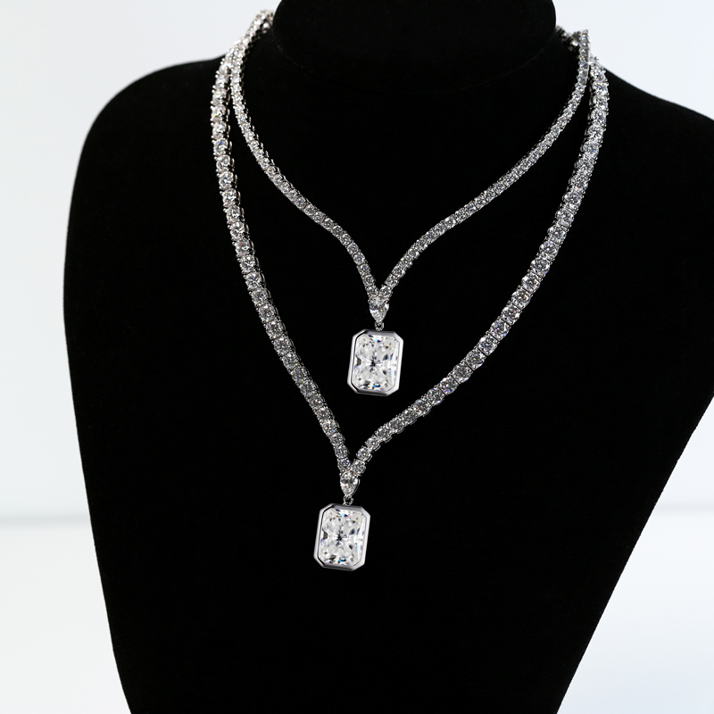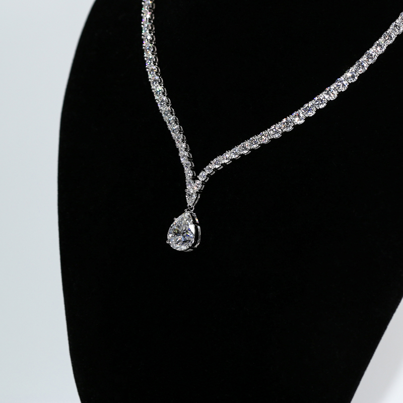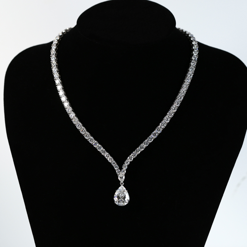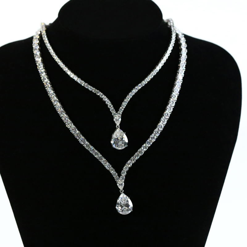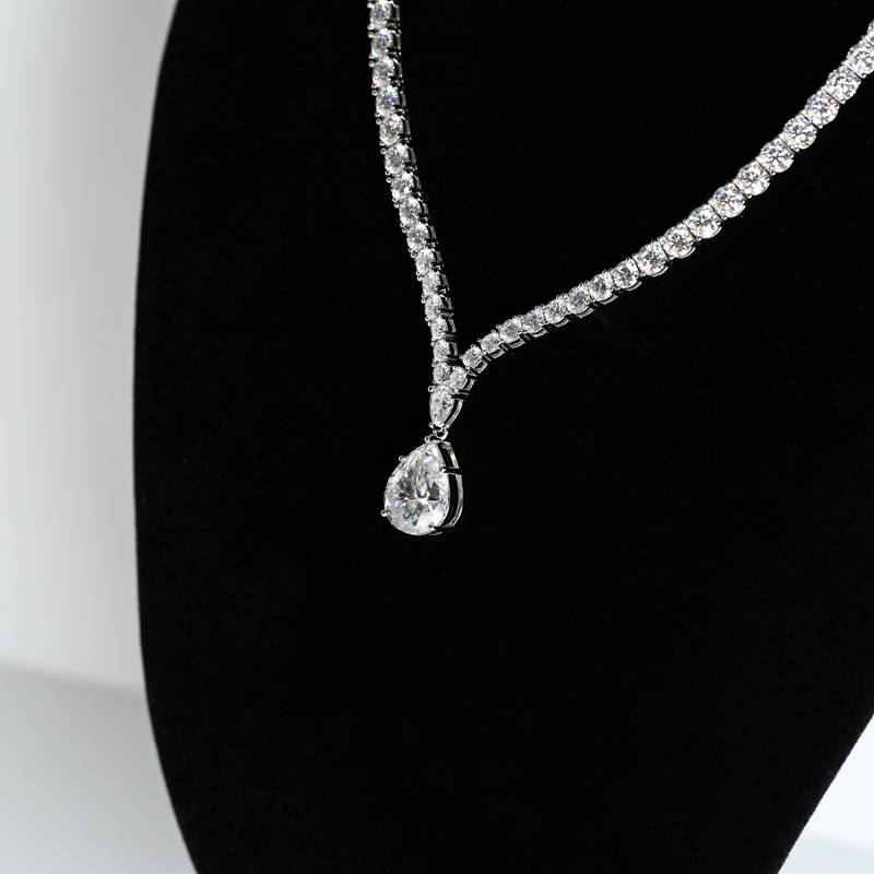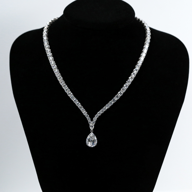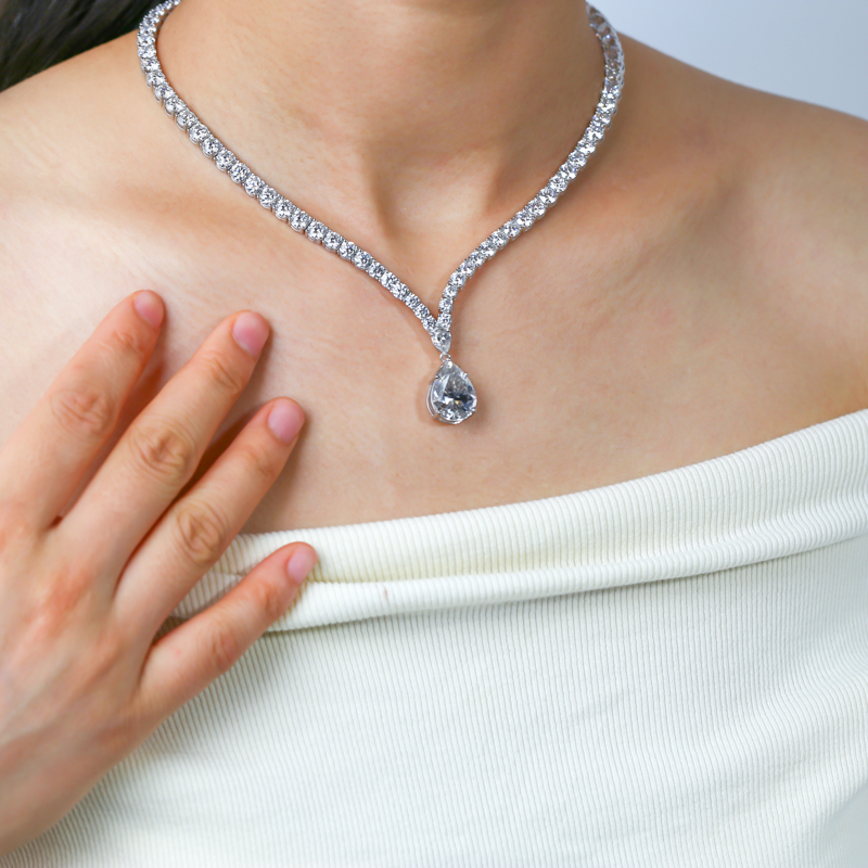Elegant 925 Sterling Silver Crystal Necklace with Pear/Emerald/Round/Radiant Pendant Luxury Sparkling Jewelry for Weddings Parties and Special Events