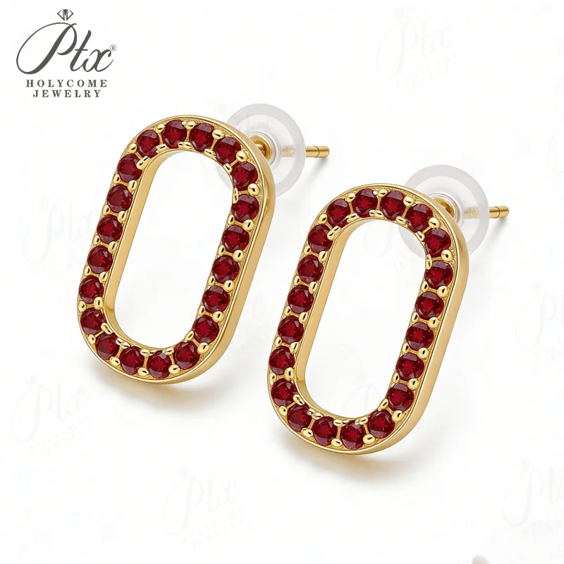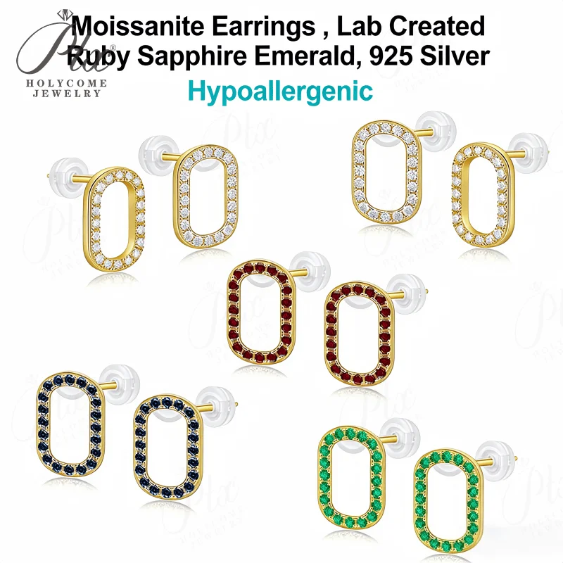 Moissanite Ruby Sapphire Earrings 925 Sterling Silver Round Cut Hollow Oval Luxury Jewelry Factory Direct Ideal Gift For Women Hypoallergenic
