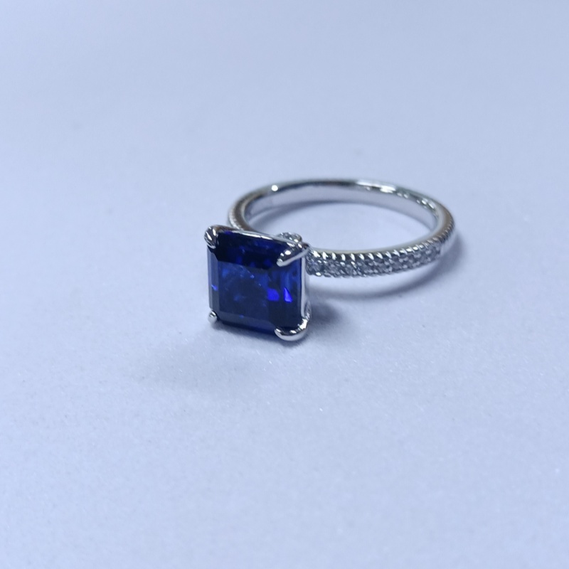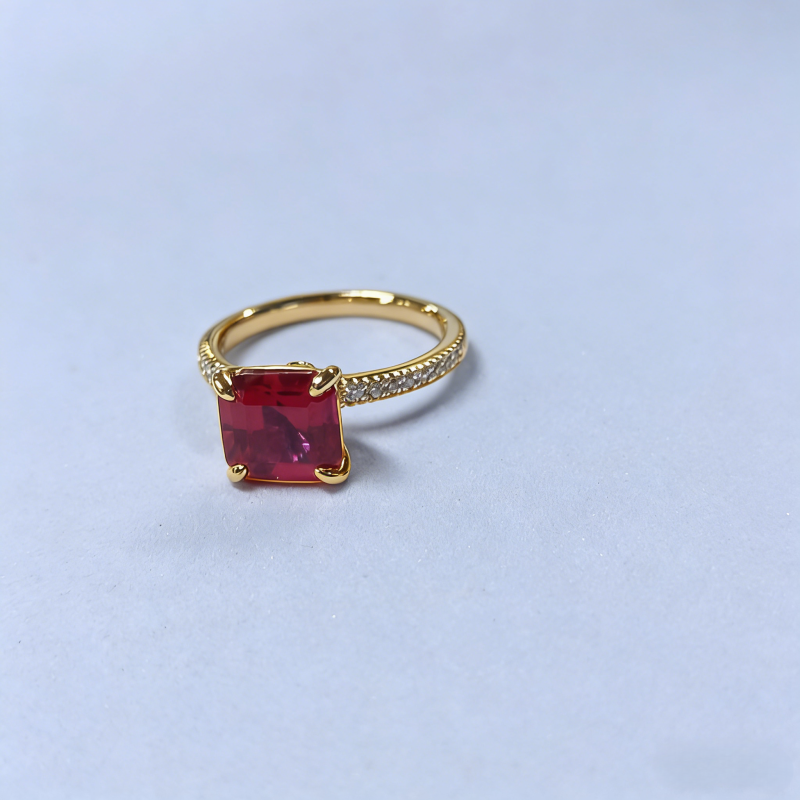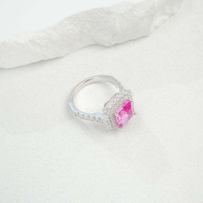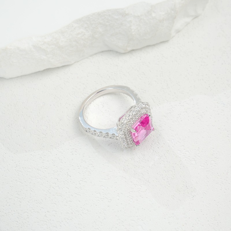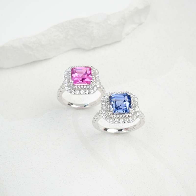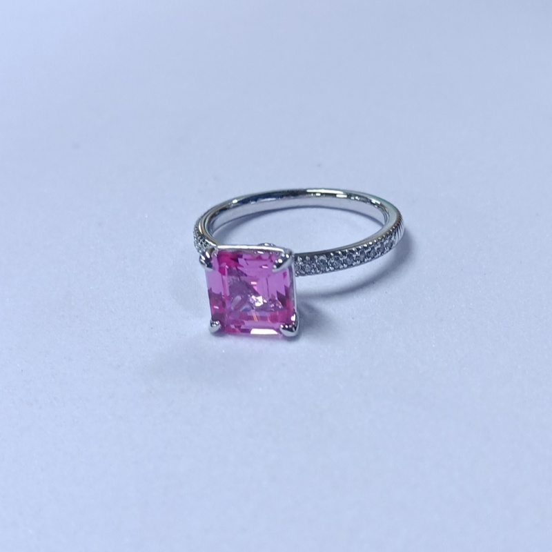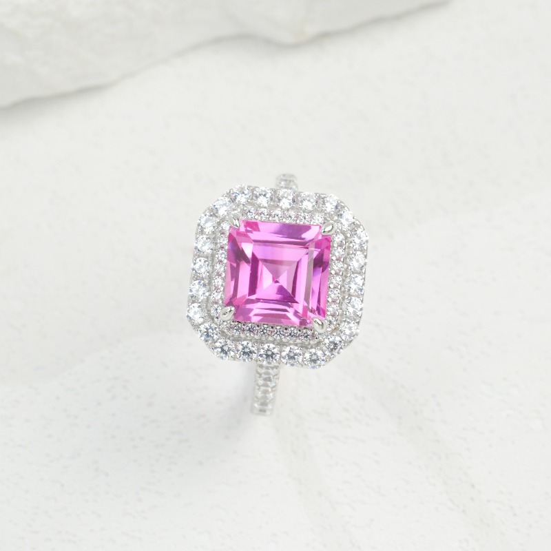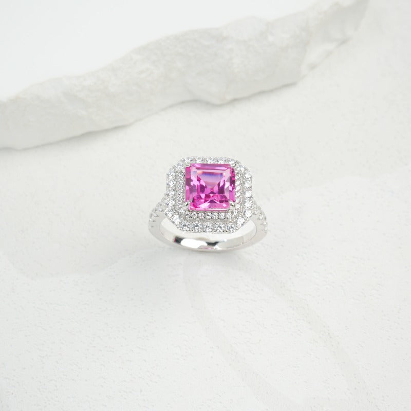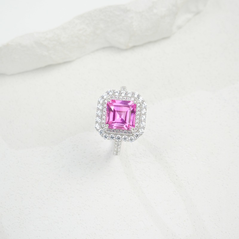 Lab Grown Gemstone Ring with Asscher Cut Ruby Sapphire Zambian Padparadscha 925 Silver As Anniversary Gift Christmas Party