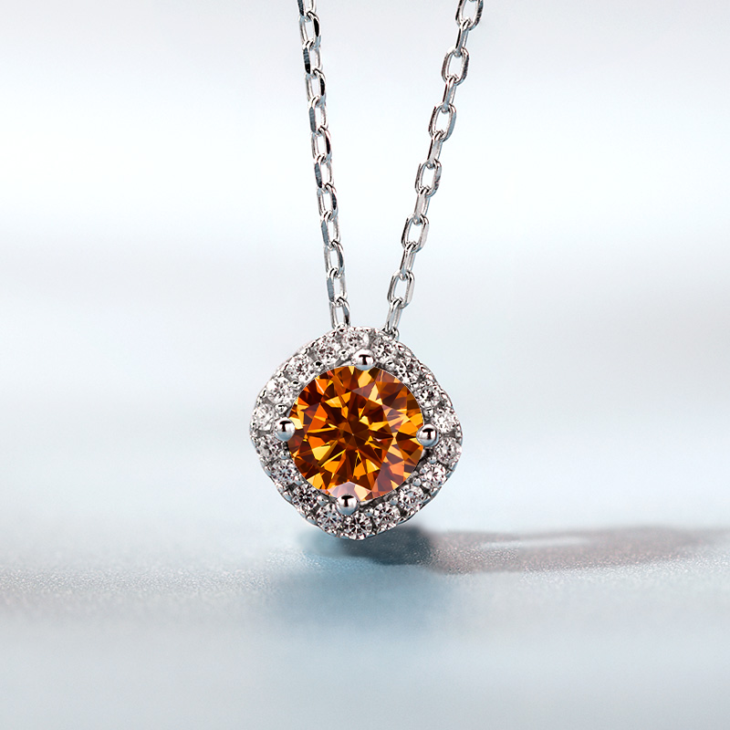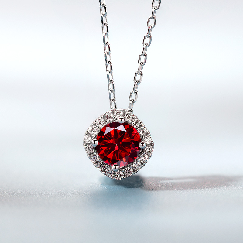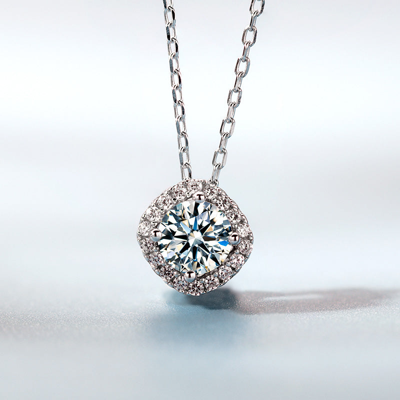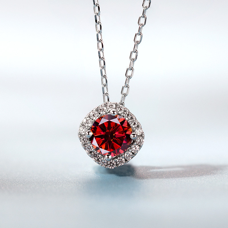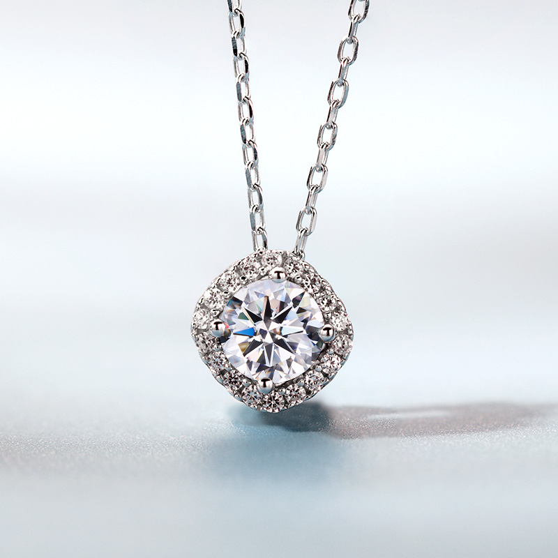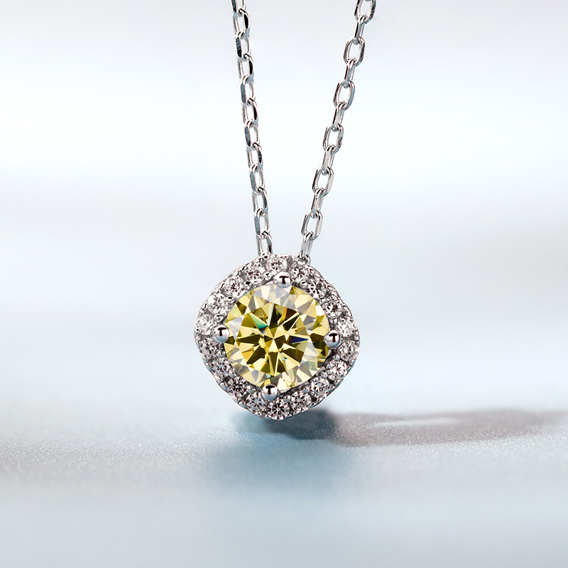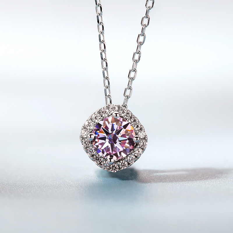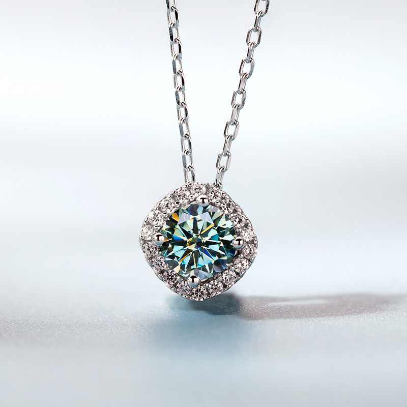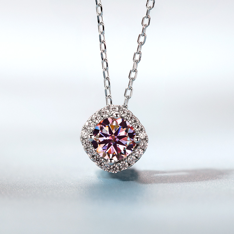 Moissanite Square-shaped Necklace Pendant Multicolor S925 Sterling Silver Gemstone Jewelry Women Wedding Anniversary Gift Party