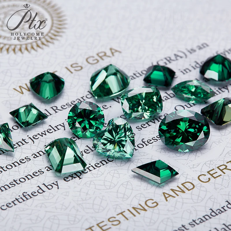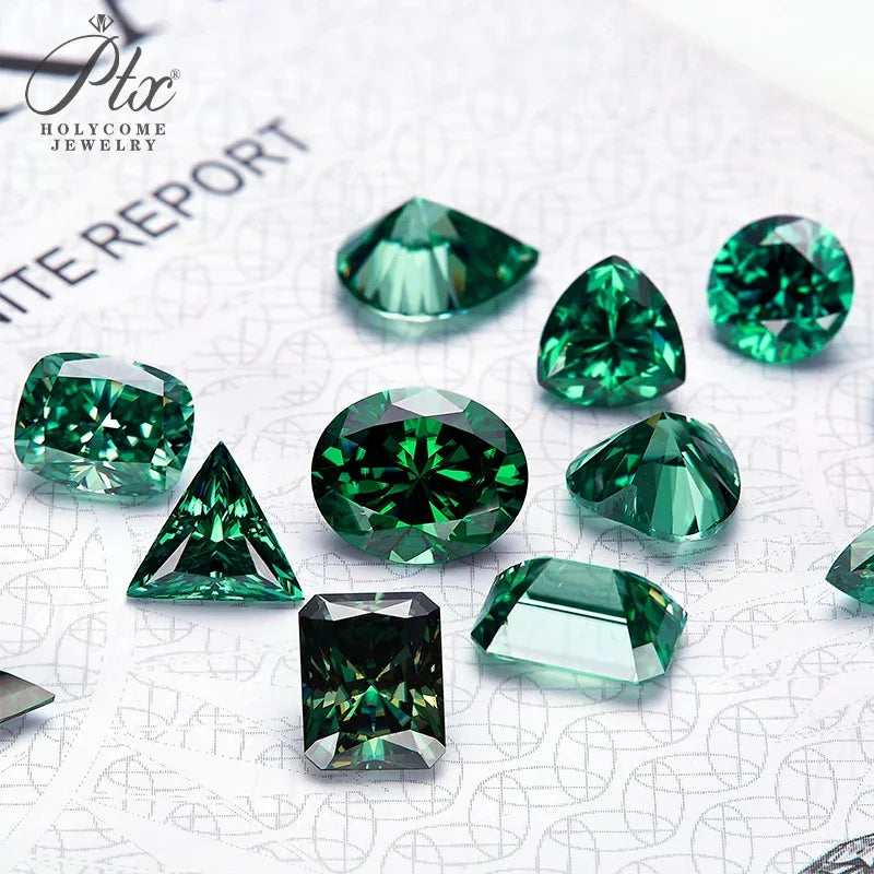 Green Moissanite VVS1 8 Hearts & 8 Arrows Round/Oval/Heart Shapes High Brilliance Loose Stones for Custom Fine Jewelry Designs