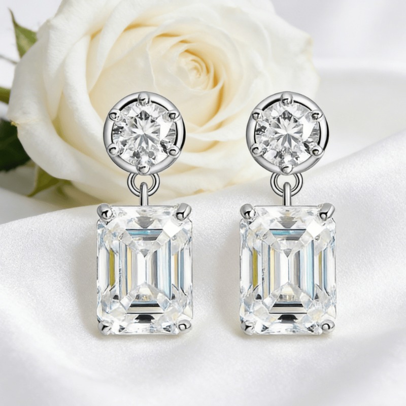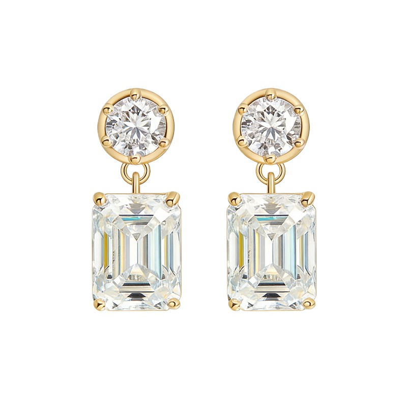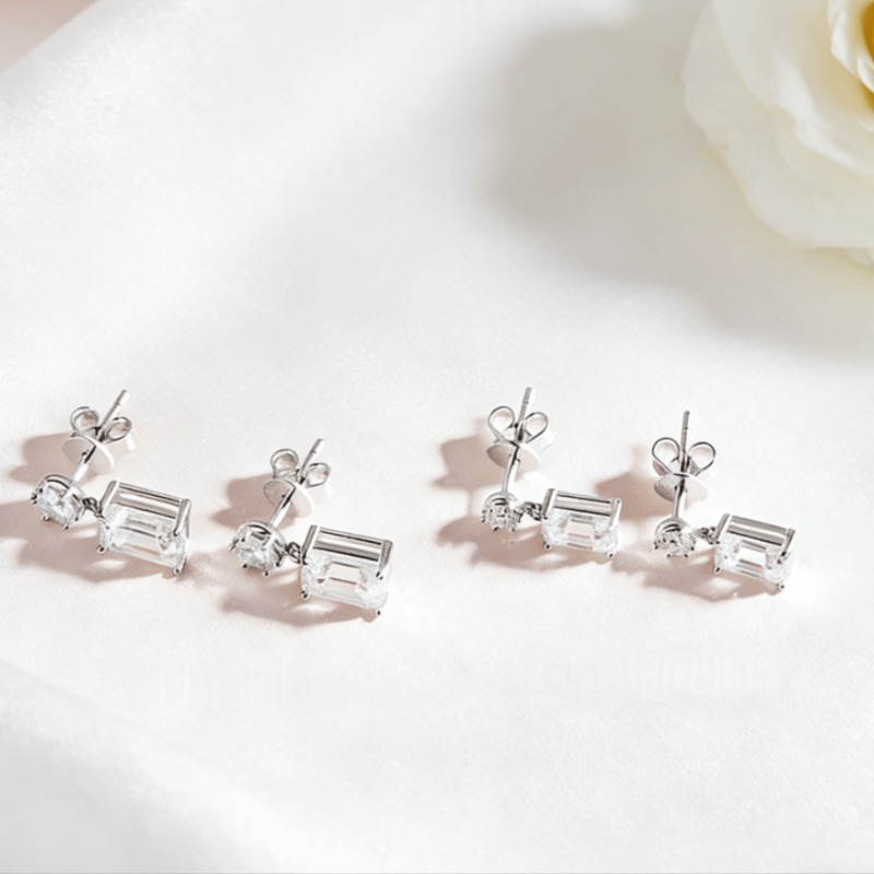 Moissanite Round Cut+Emerald Cut D White Earrings White Gold Yellow Gold Designer Studs Fine Jewelry Anniversary Wedding Gift