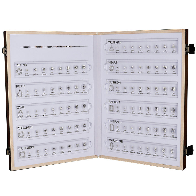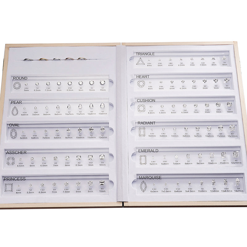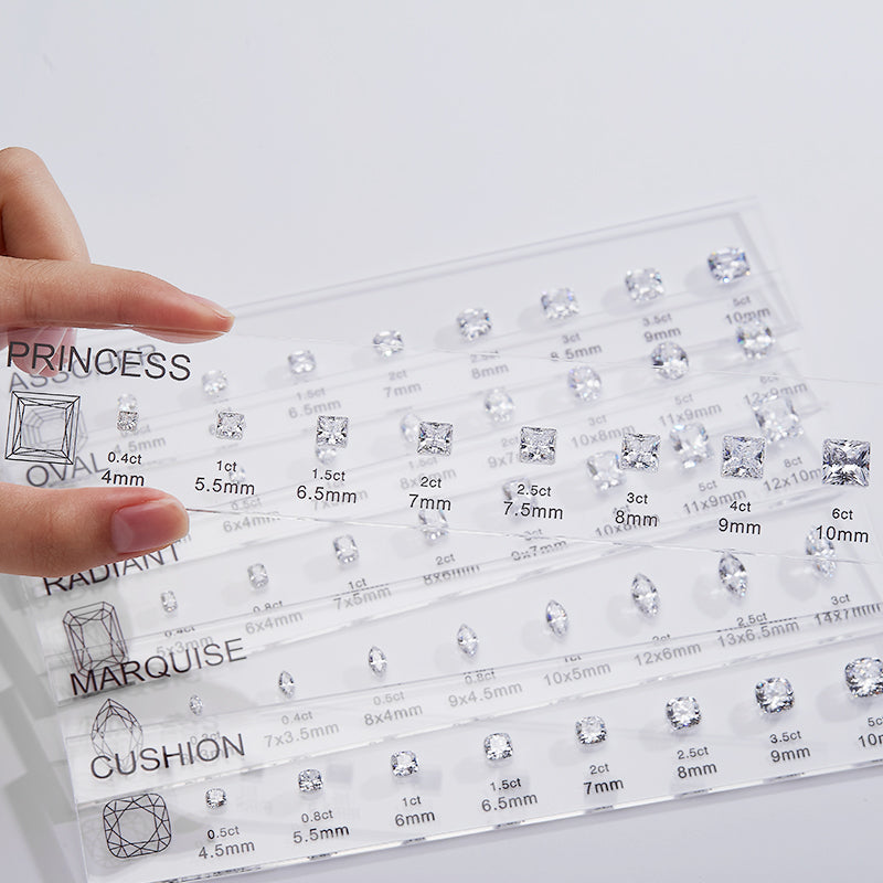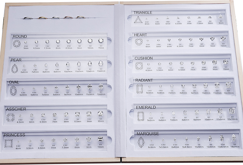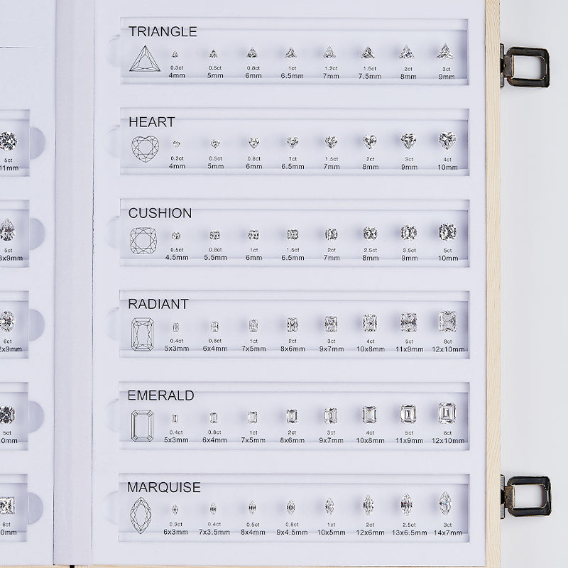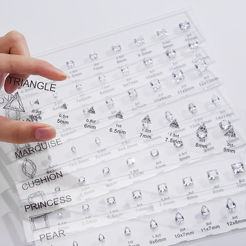 CUSTOM ZIRCON SETS - COMPARISON CHART FOR VARIOUS SHAPES AND SIZES SUITABLE FOR JEWELRY TOOLS