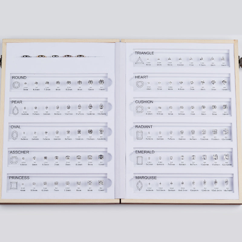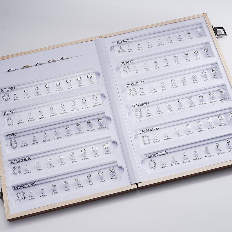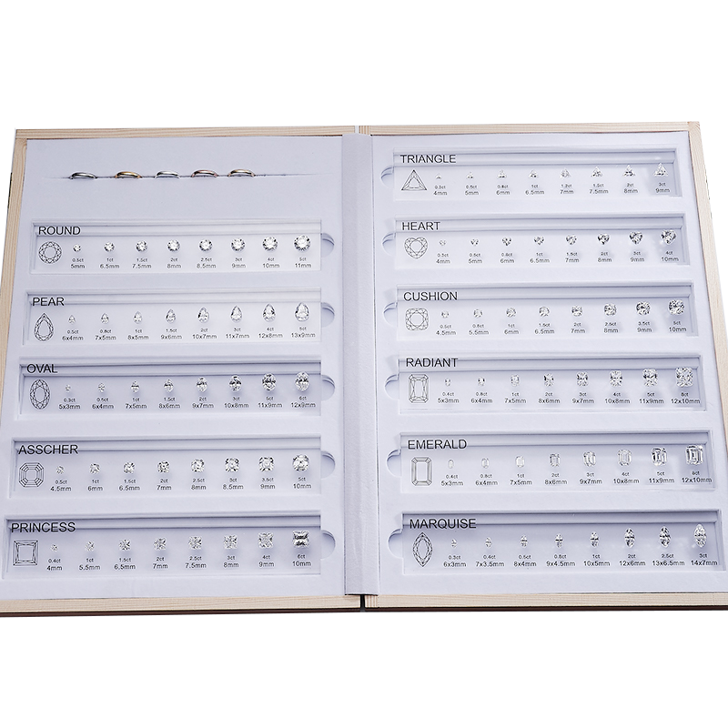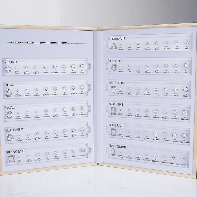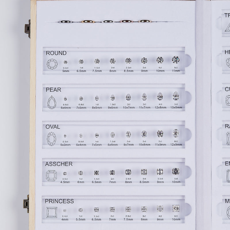 CUSTOM ZIRCON SETS - COMPARISON CHART FOR VARIOUS SHAPES AND SIZES SUITABLE FOR JEWELRY TOOLS