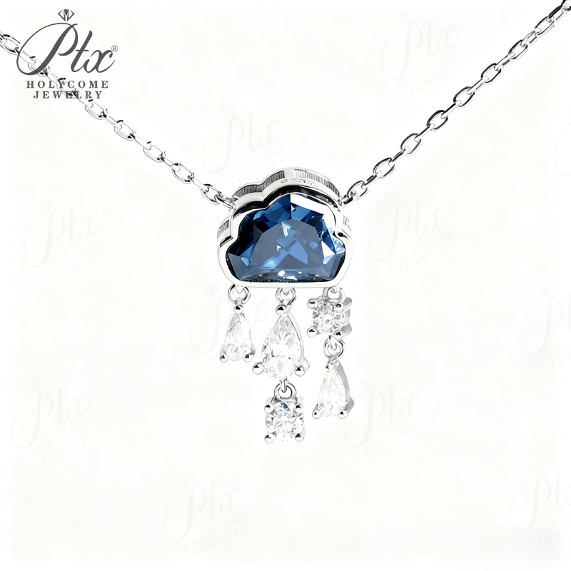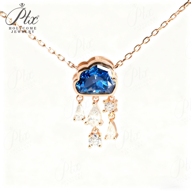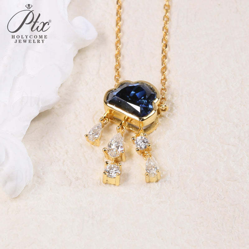 Light Luxury Design Blue Cloud Pendant Elegant Niche Collarbone Chain S925 / 10K / 14K / 18K Stylish & Sweet Necklace Women Exclusive Christmas Gift Allergy Resistant