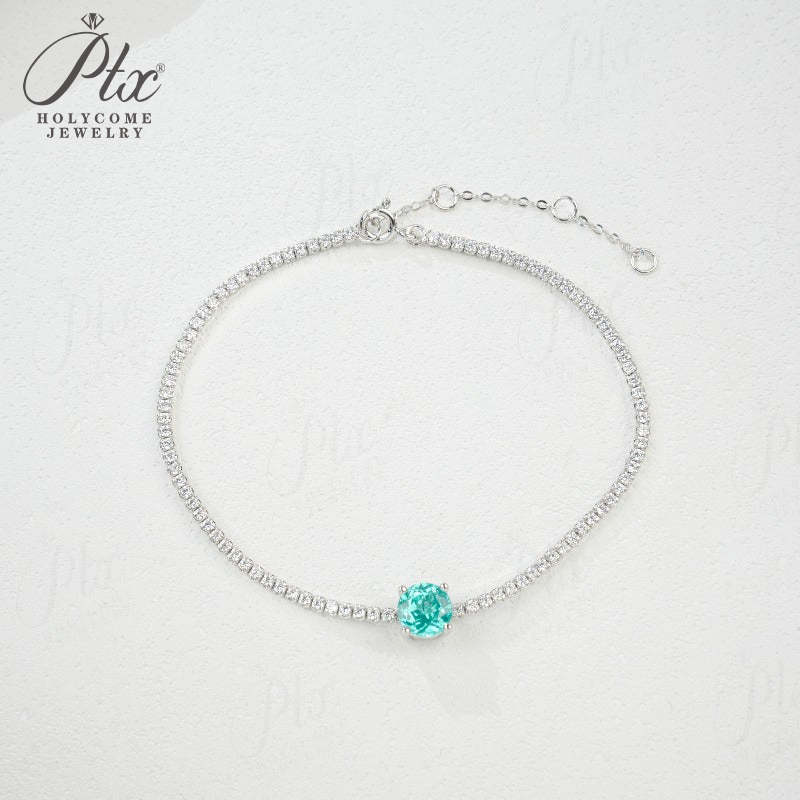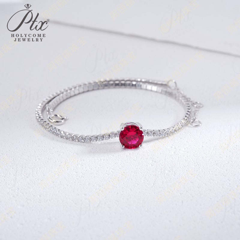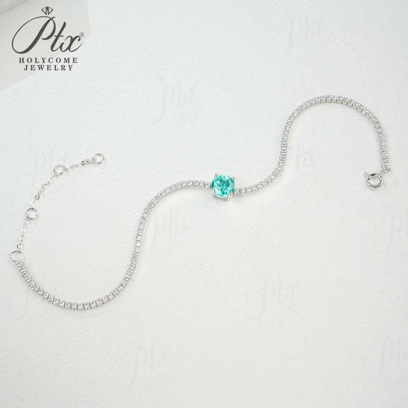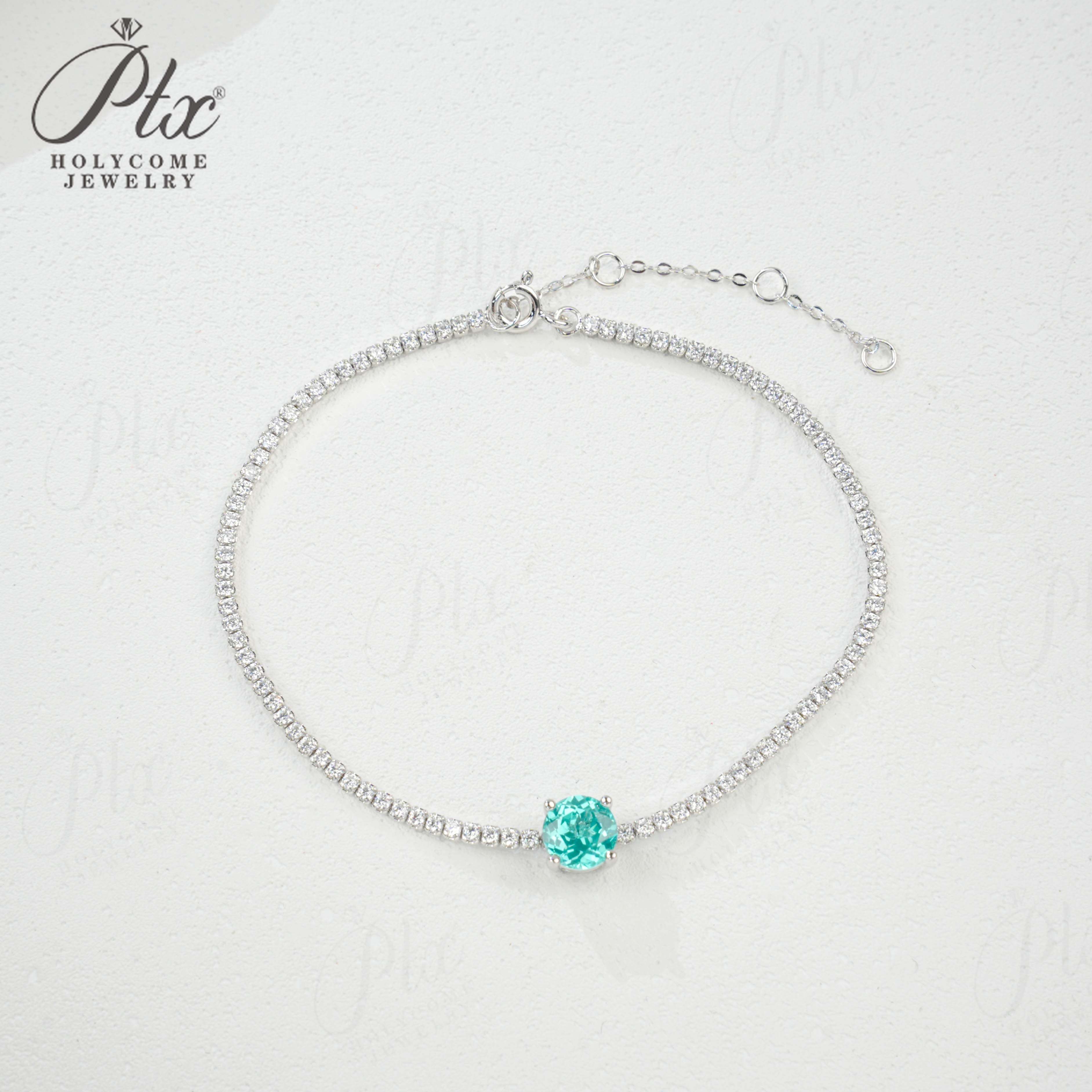 Lab-Grown Gemstone Bracelet Round Ruby Colombian Paraiba Four-Prong 925 Sterling Silver CZ Accents Christmas Gift NoFade Quality
