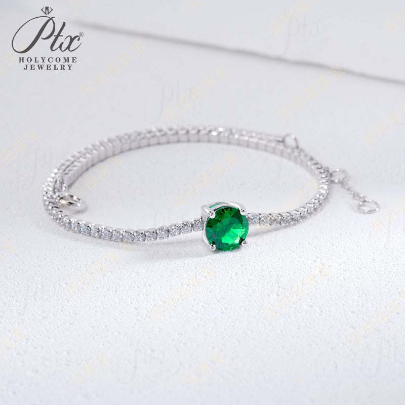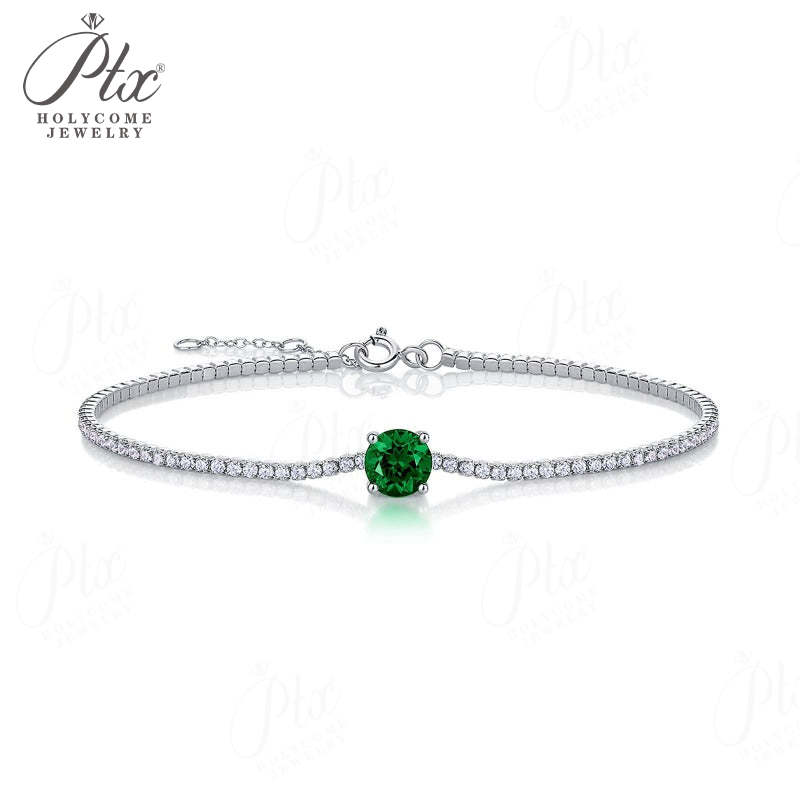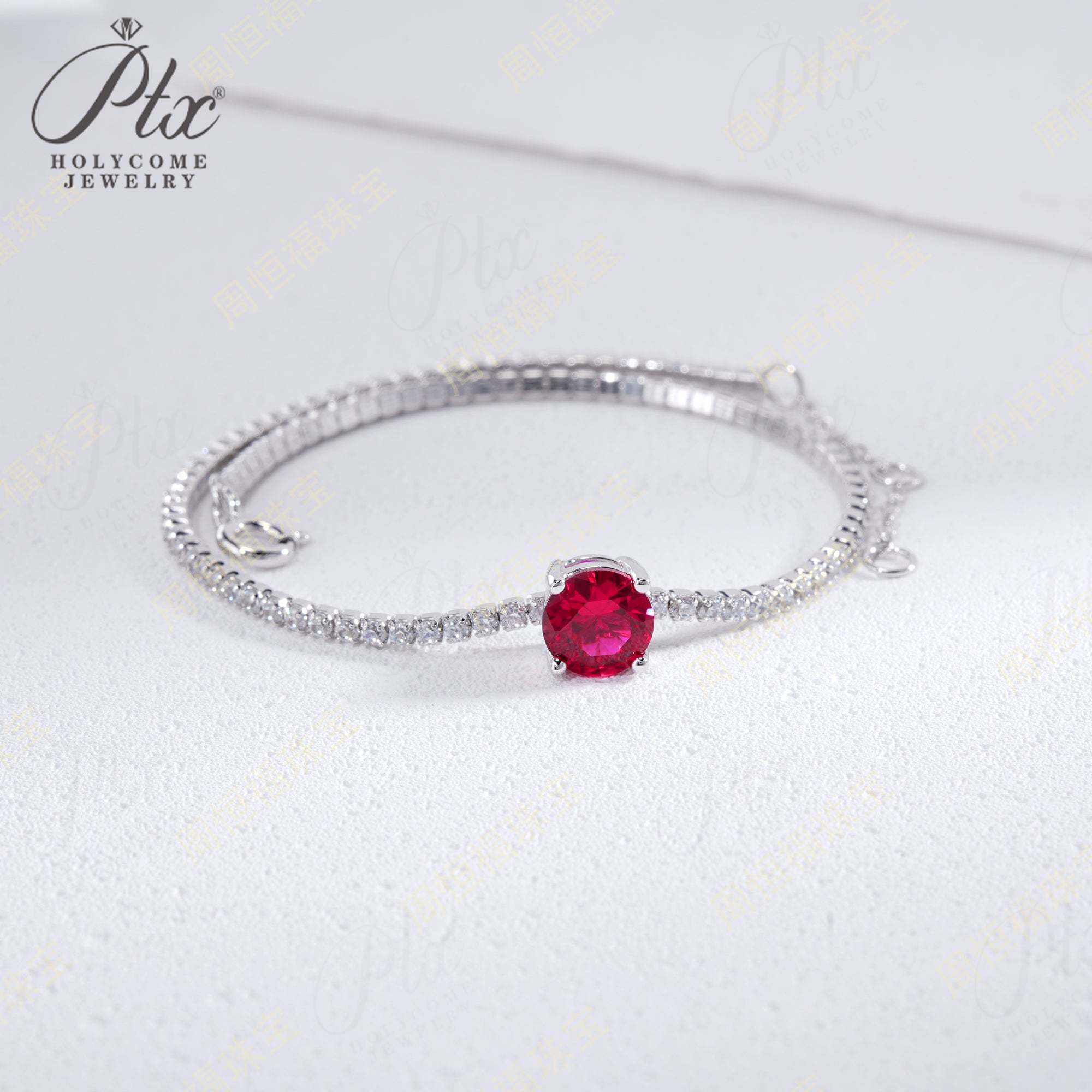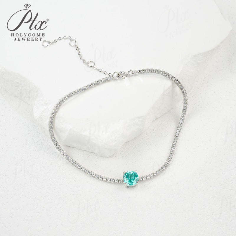 Lab-Grown Gemstone Bracelet Round Ruby Colombian Paraiba Four-Prong 925 Sterling Silver CZ Accents Christmas Gift NoFade Quality