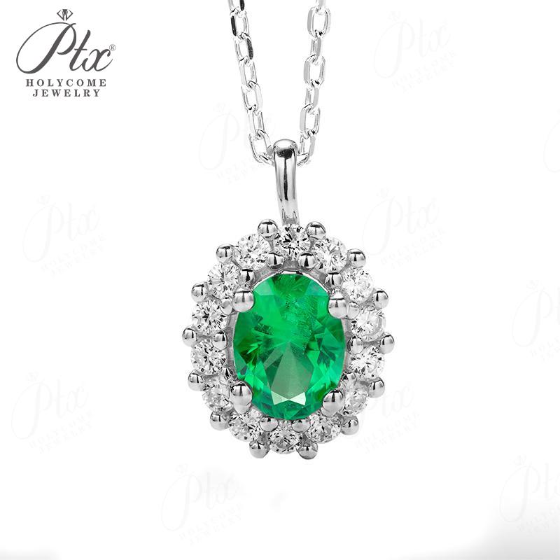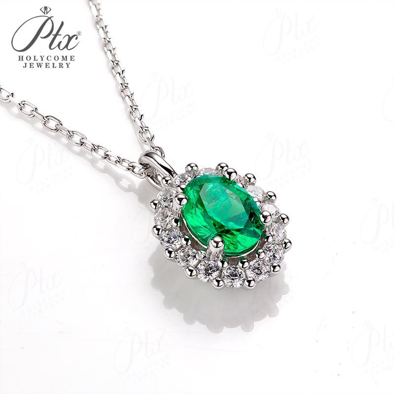 • Design: This necklace pendant is flower shape. The center stone is oval cut lab created emerald stone, side stones are some small zirconia stones around the center stone, that looks so beautiful and fancy.