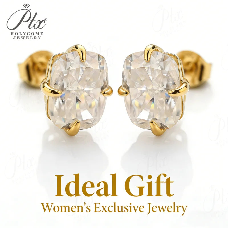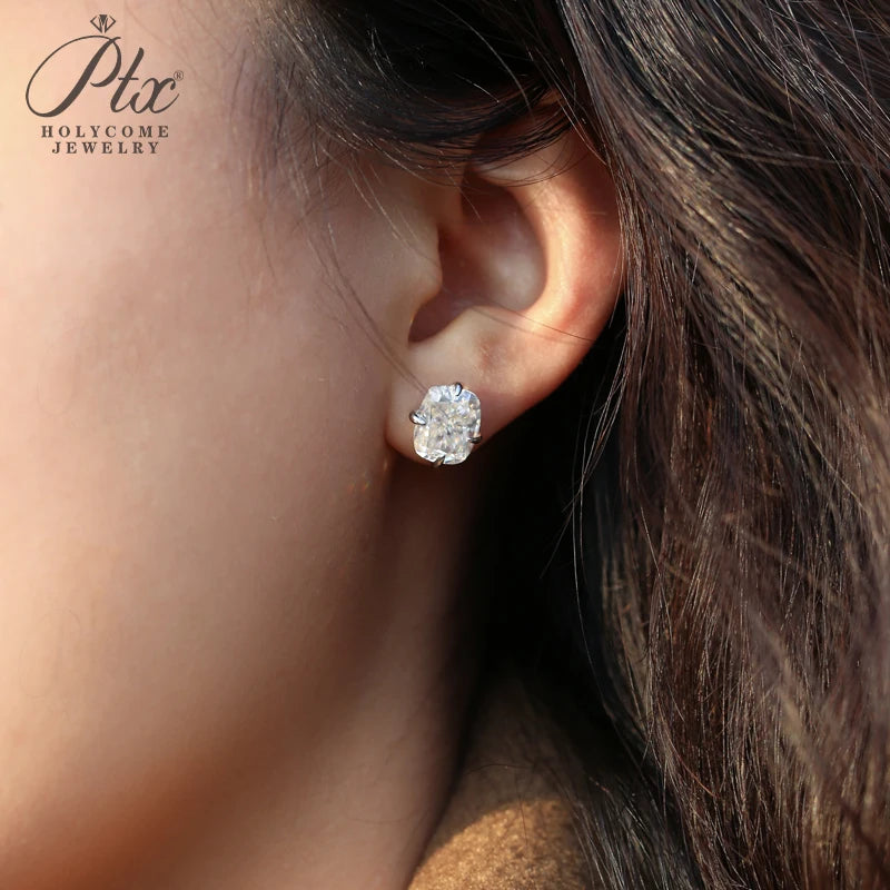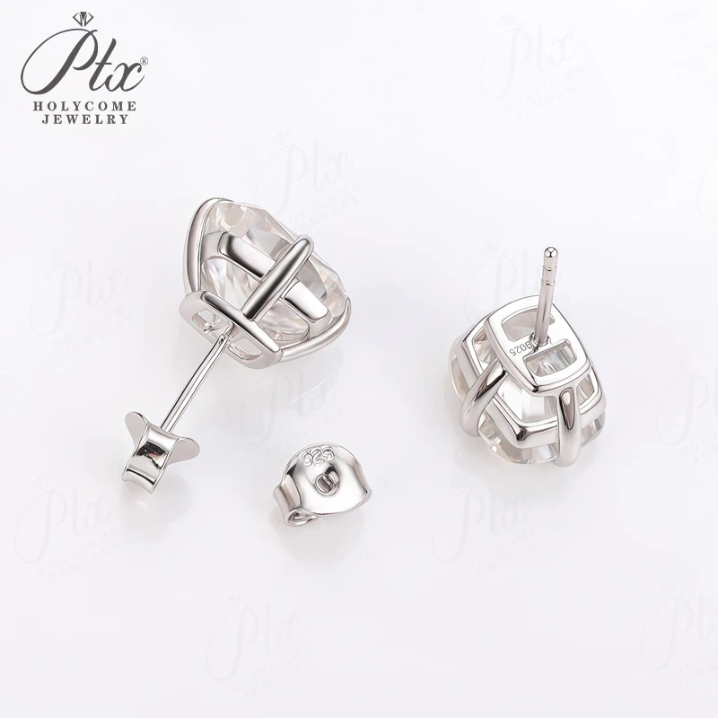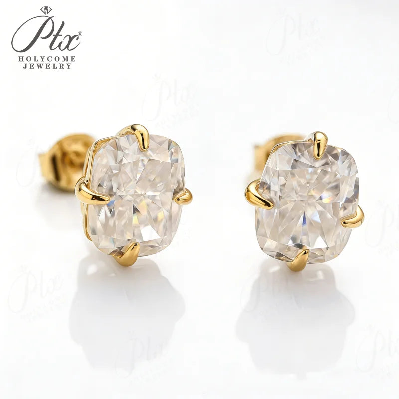 Trendy Moissanite/CZ Stud Earrings 925 Sterling Silver Crushed Ice Cut Cushion 8x10mm for Ladies Lightweight & Comfortable