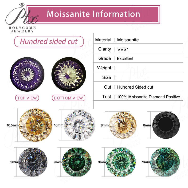 Moissanite Loose Stone Multicolor Primary Color Round Shape Hundred Sided Cut with GRA Certificate Jewelry Rings Earrings Making